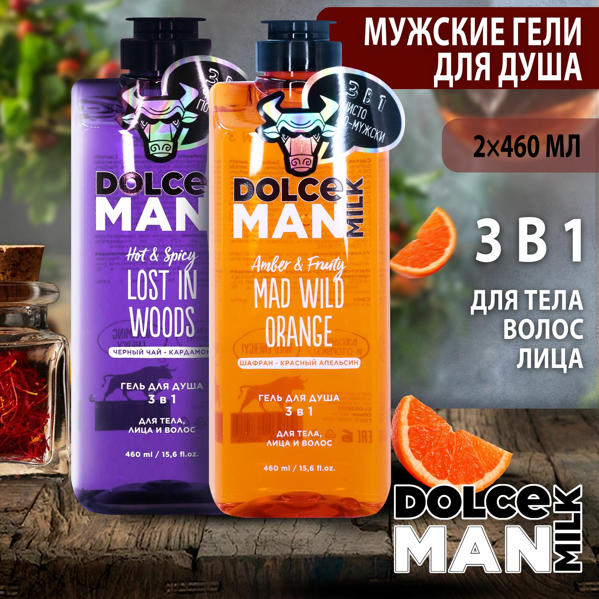 DOLCE MILK Набор №201 Гель для душа мужской 3 в 1 дикий ЛЕС 460 мл + бедовый апельсин 460 мл интересное: