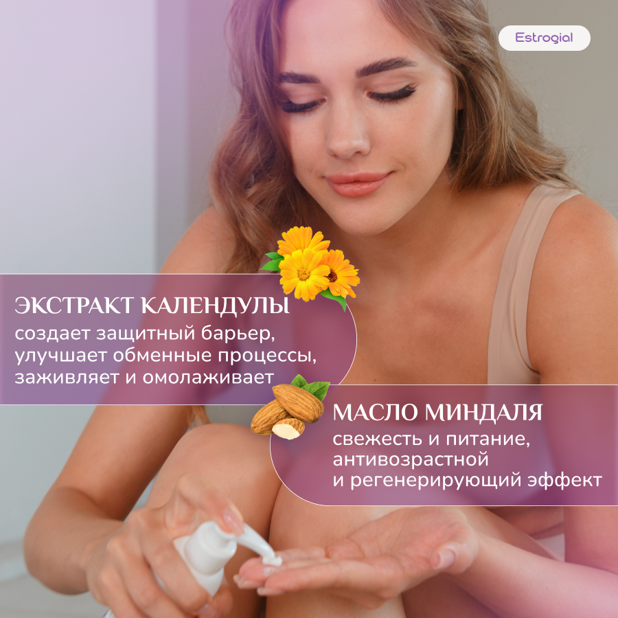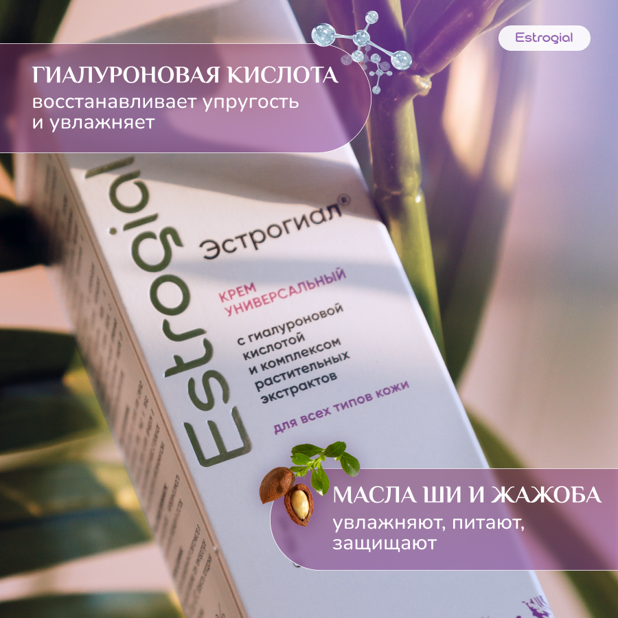 | Способ применения | Нанести крем на сухую или слегка увлажненную кожу лица и тела. Применять утром и/или вечером в качестве основного ухода, а также как средство быстрого увлажнения кожи. Эффект от применения усиливается при комплексном применении с сывороткой «Эстрогиал». |