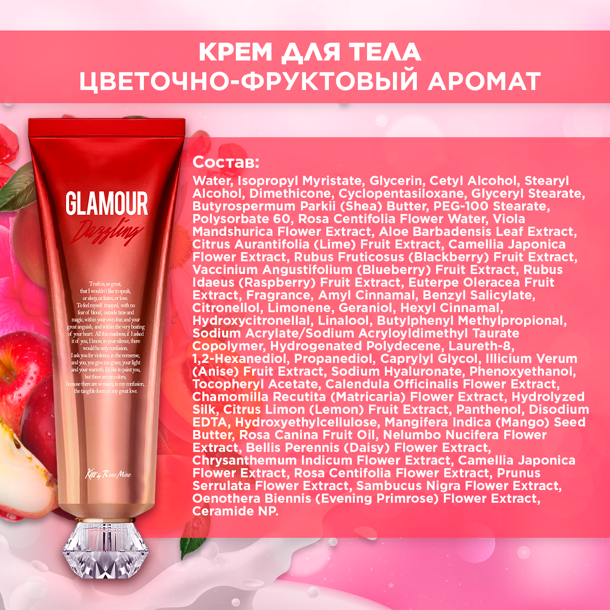 Парфюмированный крем для тела с ароматом спелых фруктов, Kiss by Rosemine - Glamour Fantasy, 140 мл