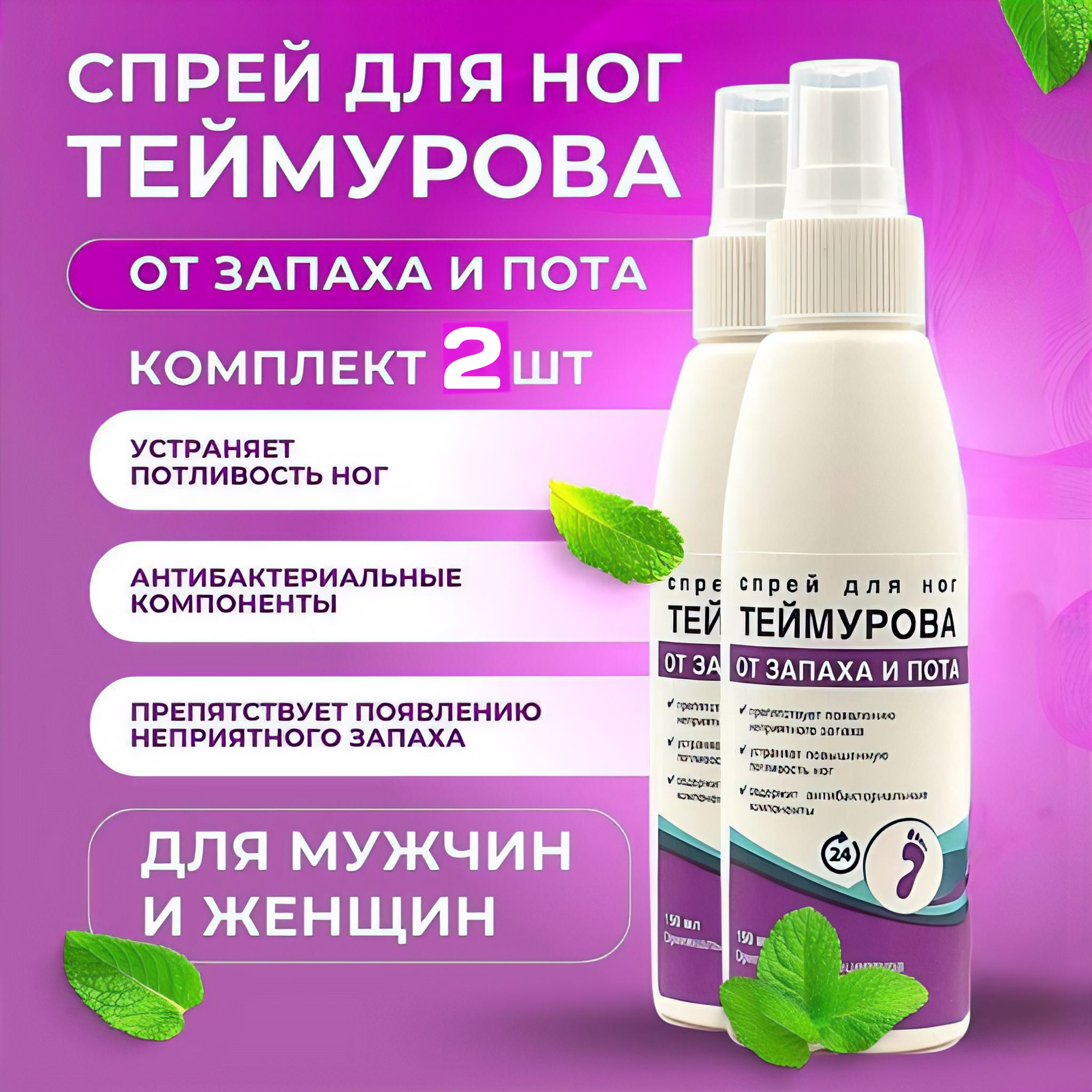 150 мл х 2 шт. Спрей для ног Теймурова от запаха и пота Мужской