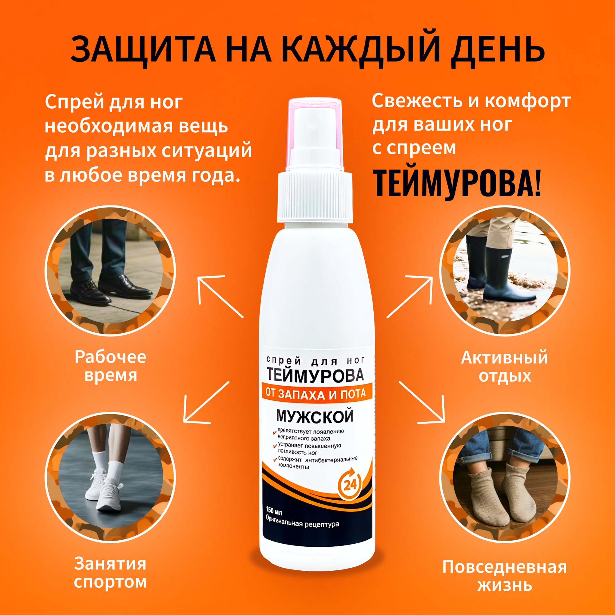 Сохранить150 мл х 5 шт. Спрей для ног Теймурова от запаха и пота Мужской интересное: