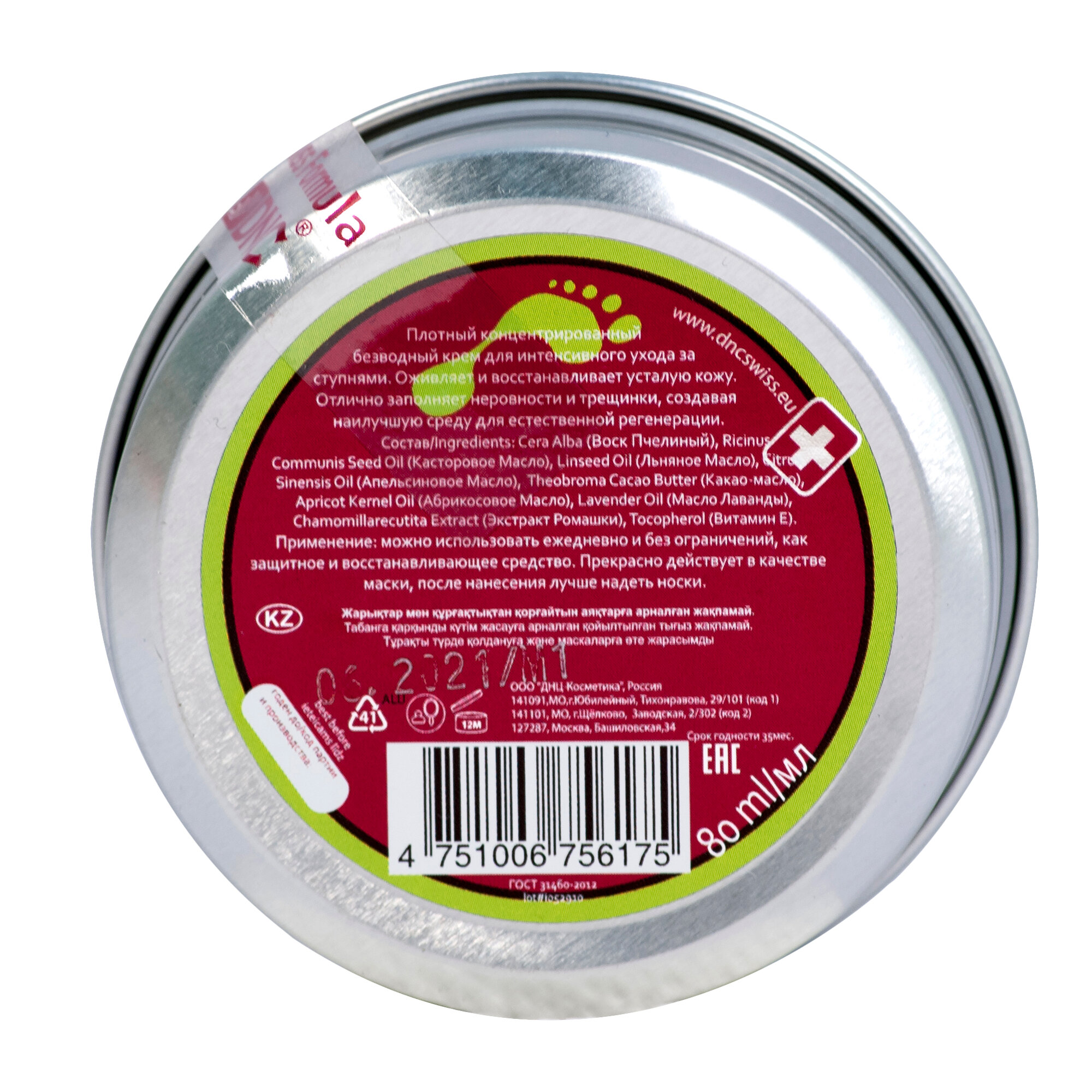 Крем-воск для ног, от трещин и сухости, 80 мл, DNC интересное: