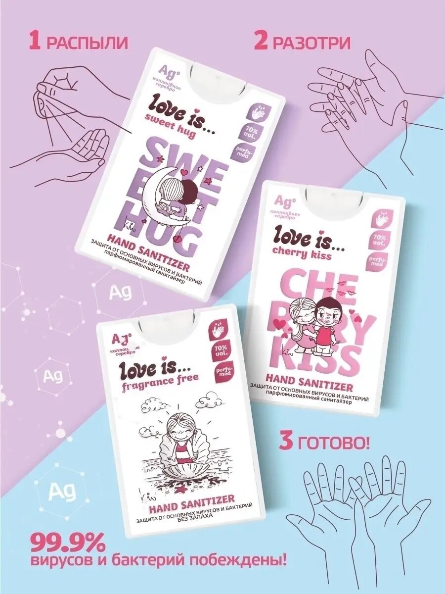 Набор универсальных антисептиков для рук "Love is..." 3 шт по 20 мл интересное:
