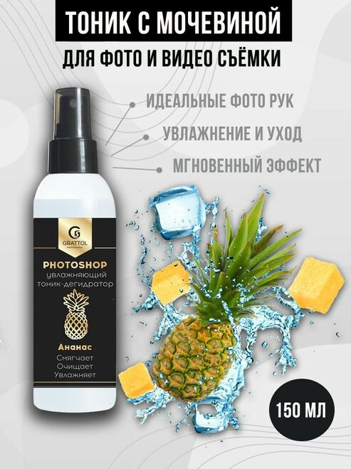 Grattol Tonic Photoshop - Увлажняющий тоник для рук с мочевиной и ароматом Ананаса, 165 мл
