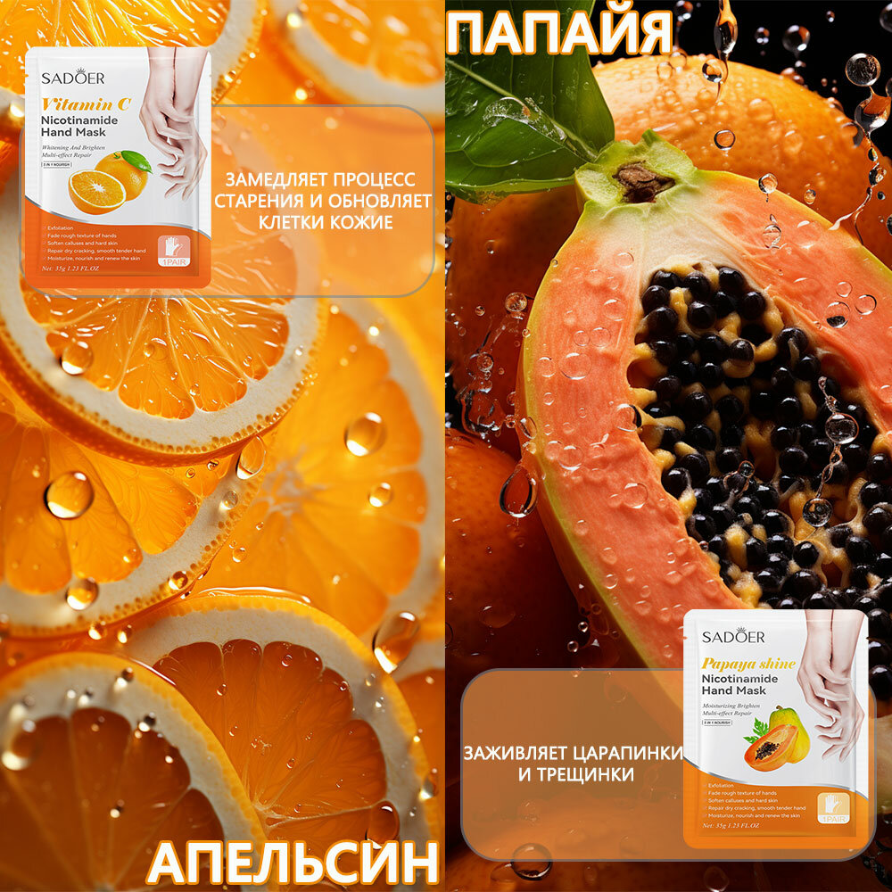 | Дополнительная информация | SPA уход на дому Маска для рук в форме перчаток - это удобное средство для ухода за кожей рук, которое содержит специальный восстанавливающий и ухаживающий состав. Профессиональный SPA уход в домашних условиях поможет избавиться от сухости, насытить кожу витаминами и натуральными экстрактами, повысить ее упругость и эластичность, а также снять раздражение и шелушение. Маска в форме перчаток делает процедуру максимально эффективной и приятной, а ее легкая текстура мгновенно впитывается, не оставляя липких и жирных следов. После применения маски для рук Ваша кожа останется гладкой, эластичной и шелковистой на долгое время. Благодаря форме перчаток, Вы можете проводить процедуру самостоятельно в удобное для Вас время, не прерывая повседневные дела. |