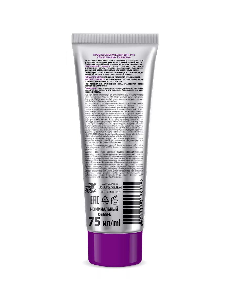 Весна Tolk+ Pharm Крем для рук Гиалурон Глубокое увлажнение, 75 мл интересное: