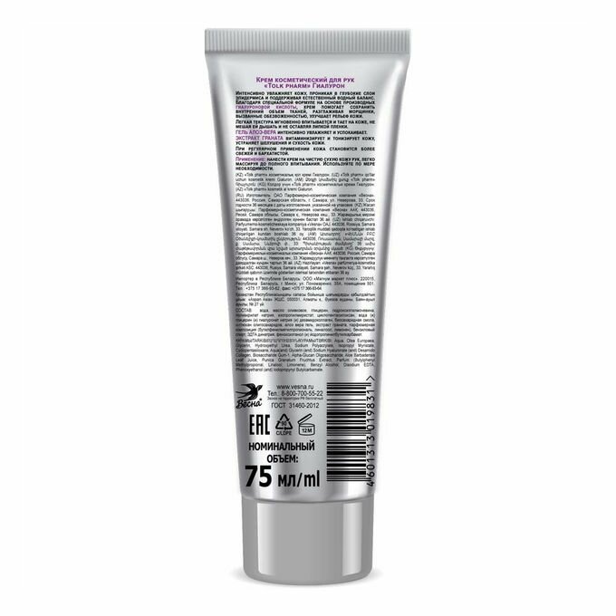 Купить Весна Tolk+ Pharm Крем для рук Гиалурон Глубокое увлажнение, 75 мл