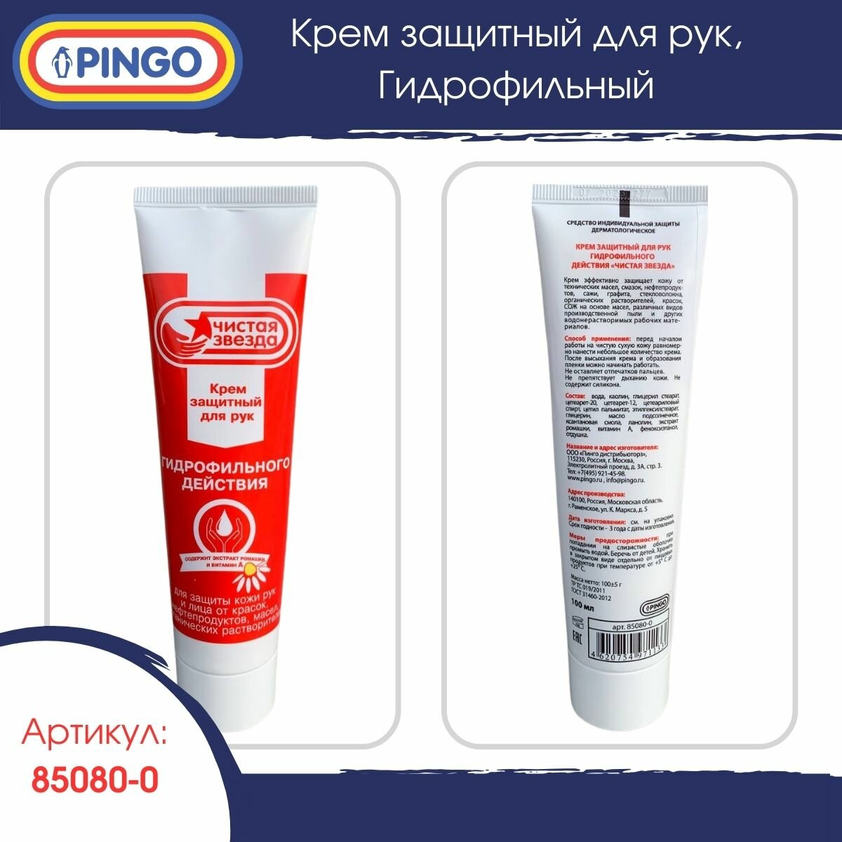 Чистая звезда, крем защитный для рук гидрофильного действия, туба 100 мл интересное: