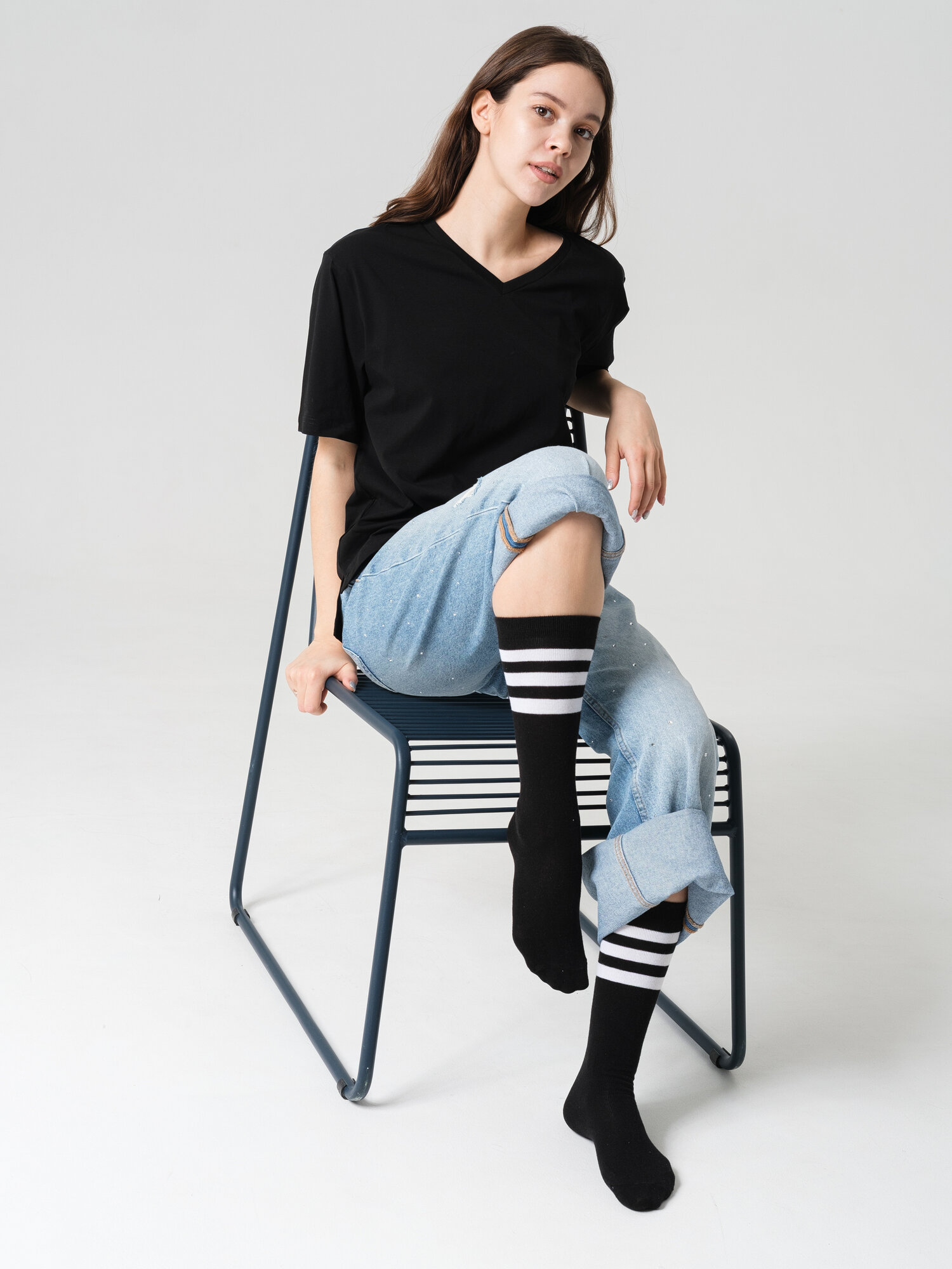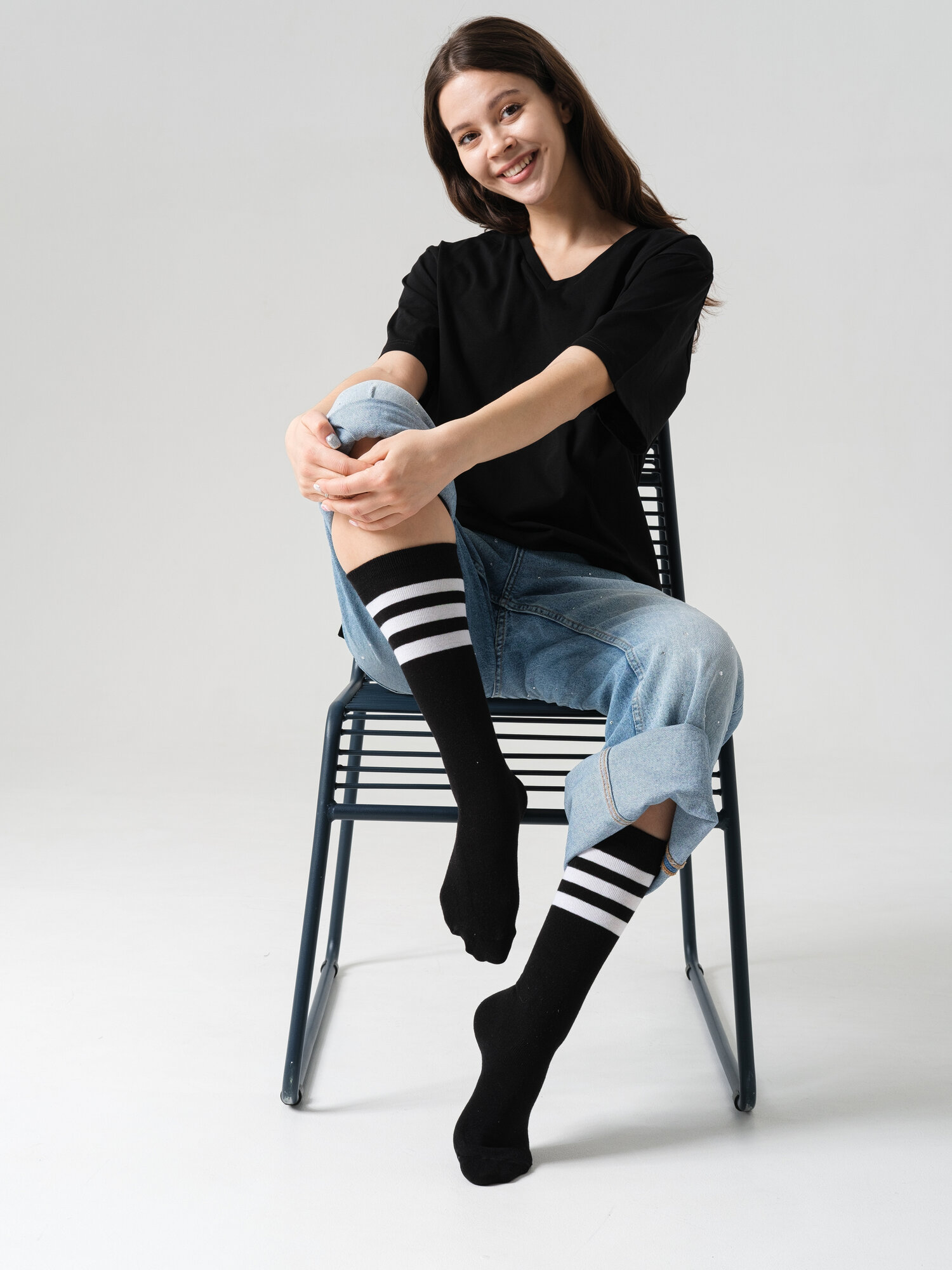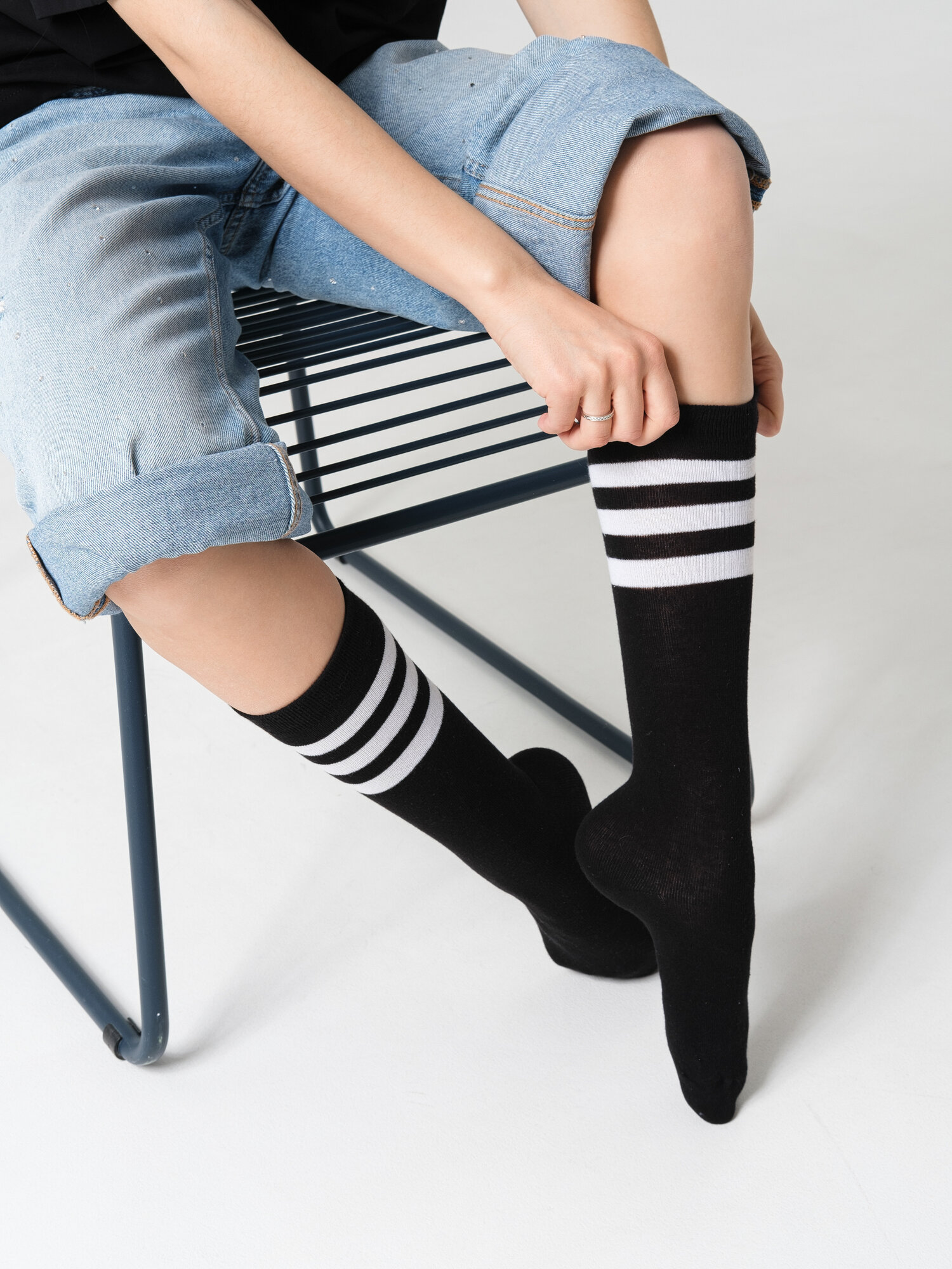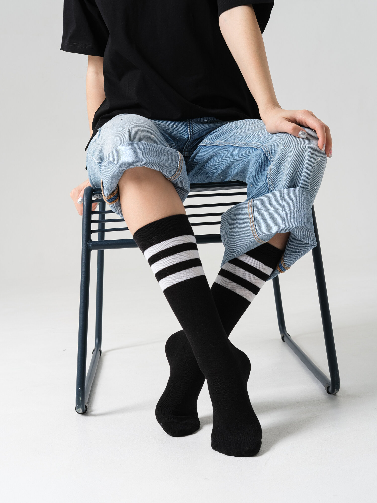 Гольфы, NL TEXTILE GROUP, набор 2 пары, белые и черные, с полосками интересное: