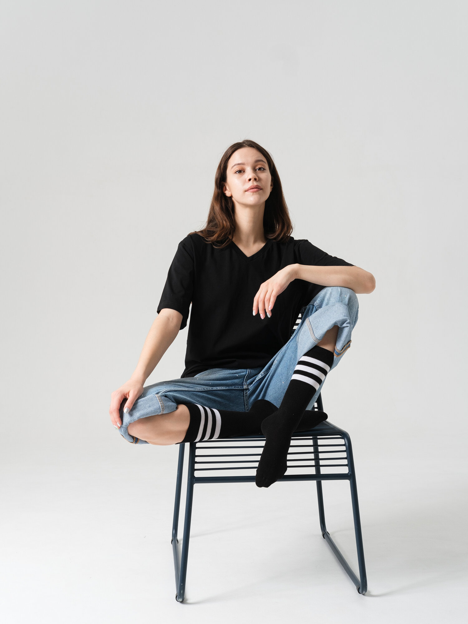 Купить Гольфы, NL TEXTILE GROUP, набор 2 пары, белые и черные, с полосками