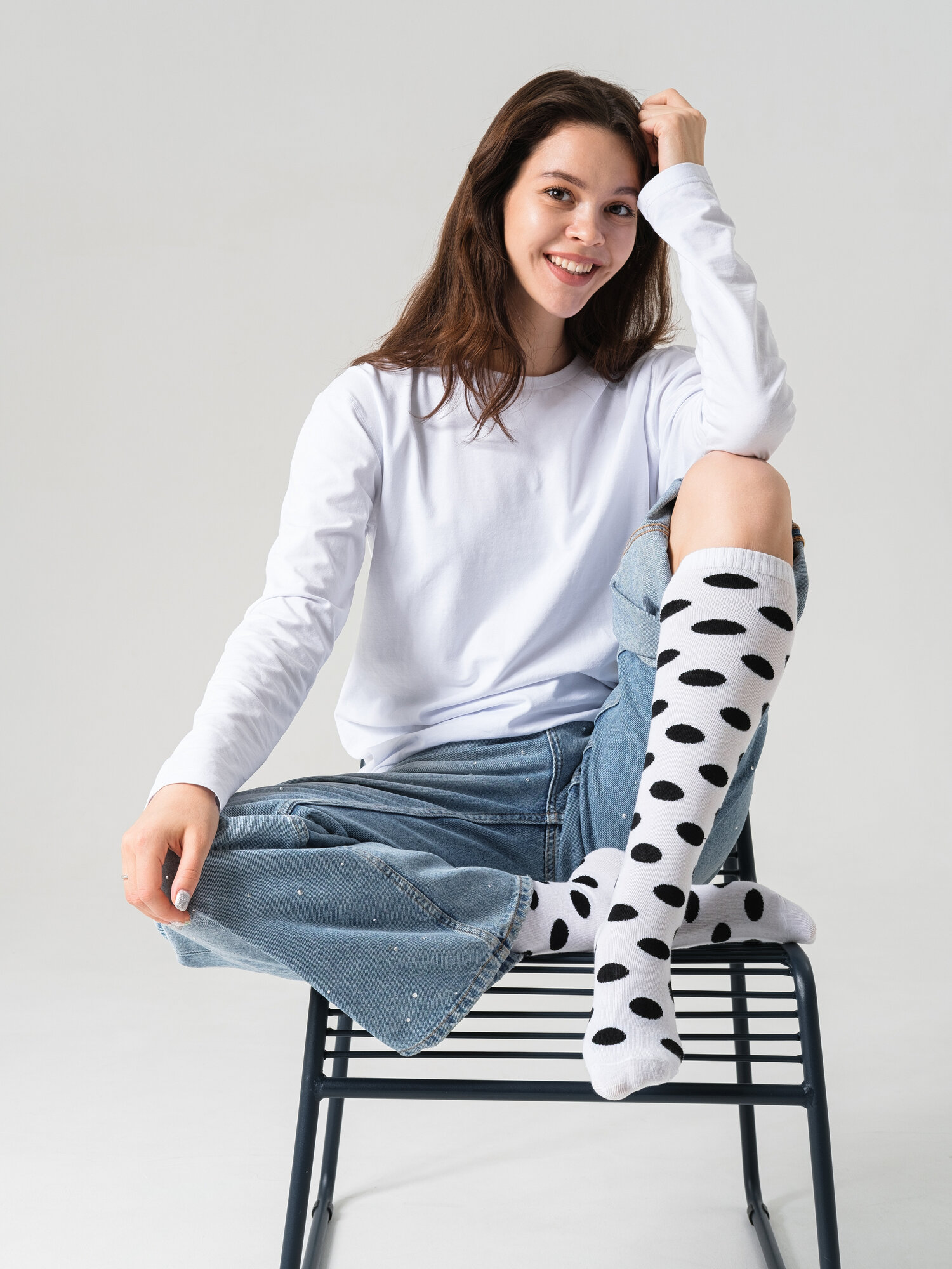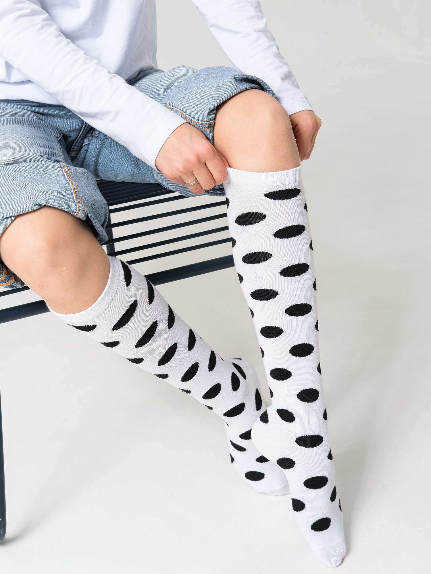 Купить Гольфы, NL TEXTILE GROUP, набор 2 пары, белые горох и черные однотонные, размер ноги 35-37