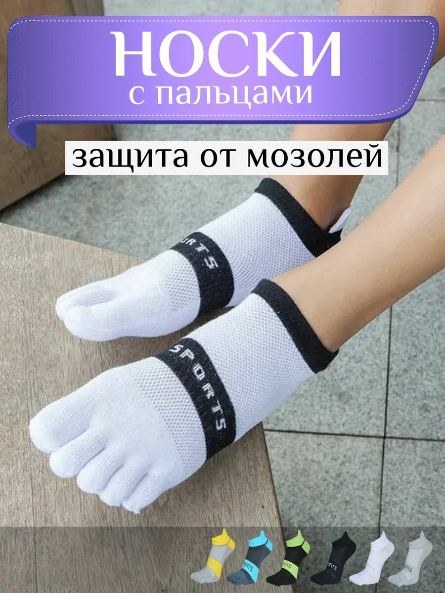 Спортивные носки 5 пальцев / Короткие носки с отдельными пальцами, белый + черный интересное: