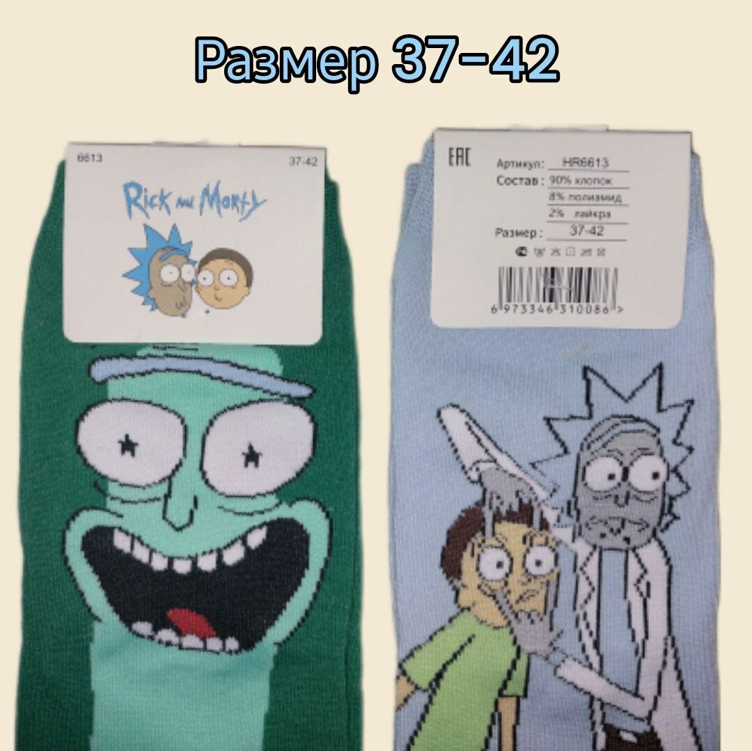 Носки Рик и Морти Turkan, 10 пар, размер 37-42, желтый, бежевый, голубой, белый, зеленый, синий интересное: