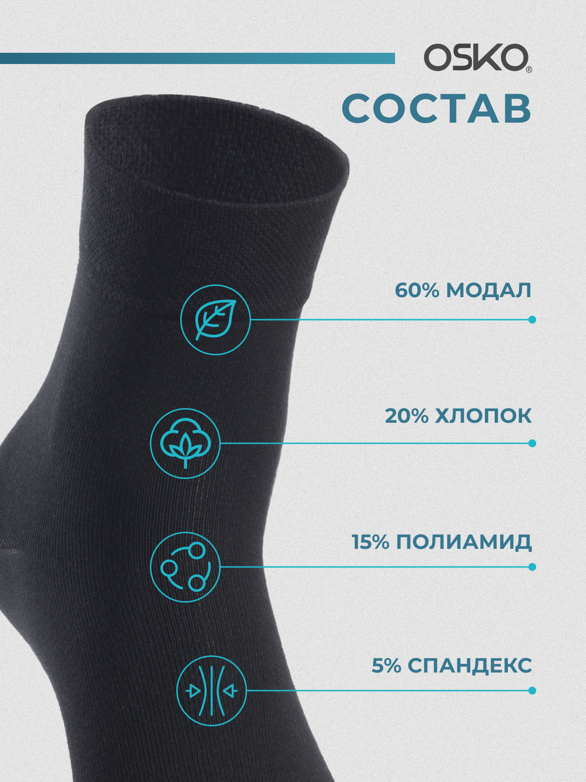 | Состав | модал 60% / полиамид 15% / спандекс 5% / хлопок 20% |