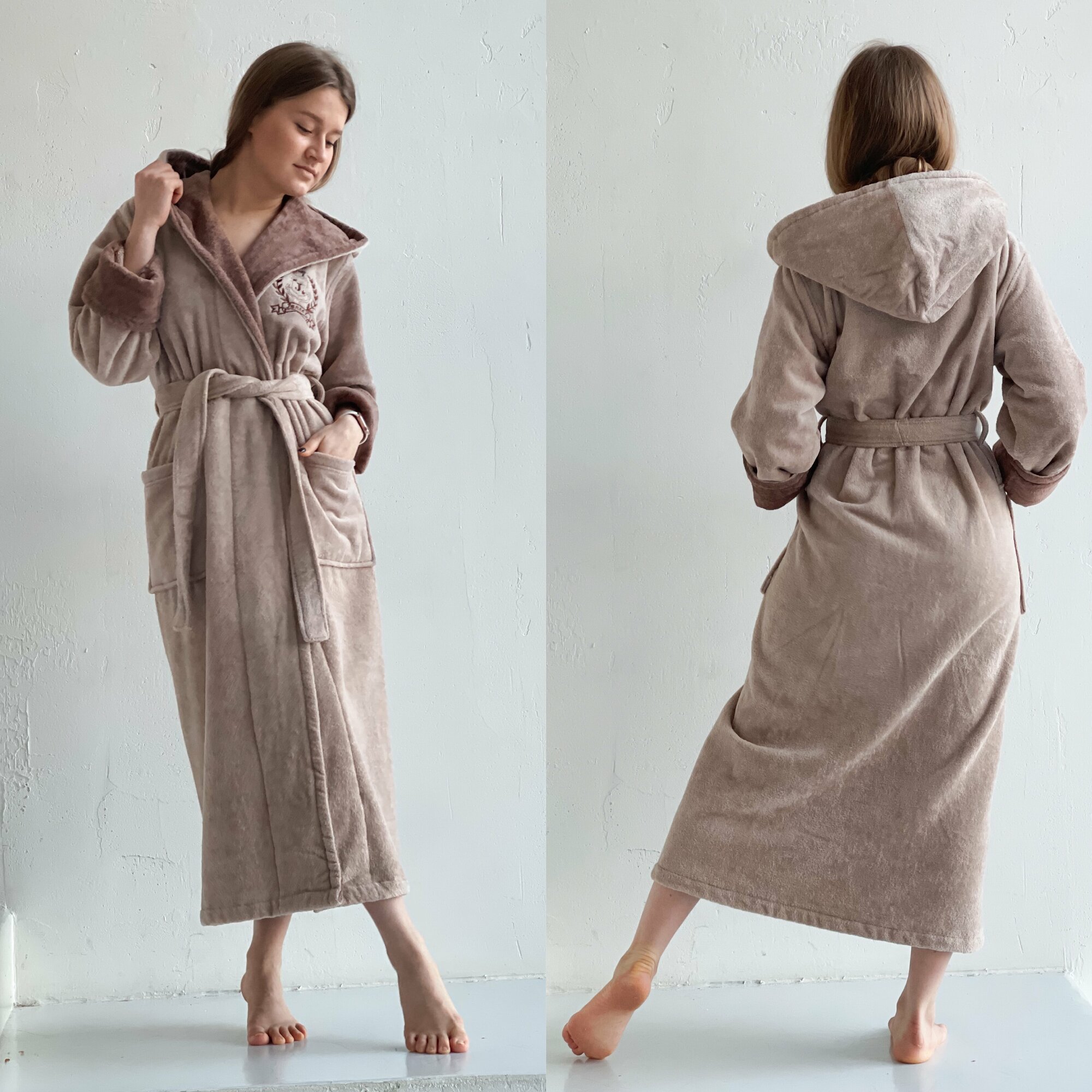 | Дополнительная информация | бережная стирка при 30-40 градусах; использование кондиционера-ополаскивателя для белья придаст халату мягкость; гладить на высоких температурах, можно использовать отпариватель; возможно использавание халата вместо полотенца, за счет свойства хорошо впитывать влагу; халат подходит для беременных и кормящих |