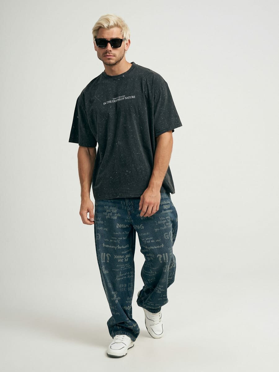Купить Хлопковая футболка тай-дай варенка с принтом на спине твое, арт. B2977,черный,S