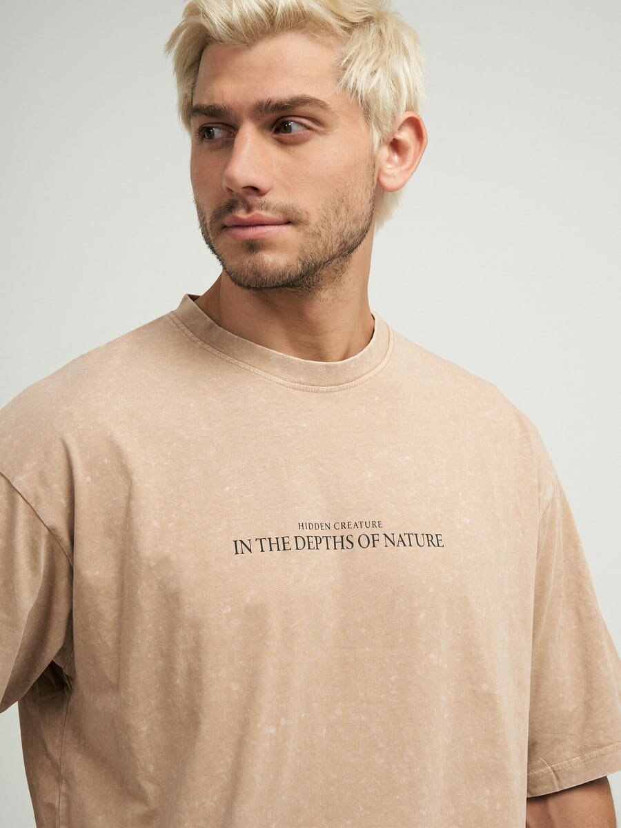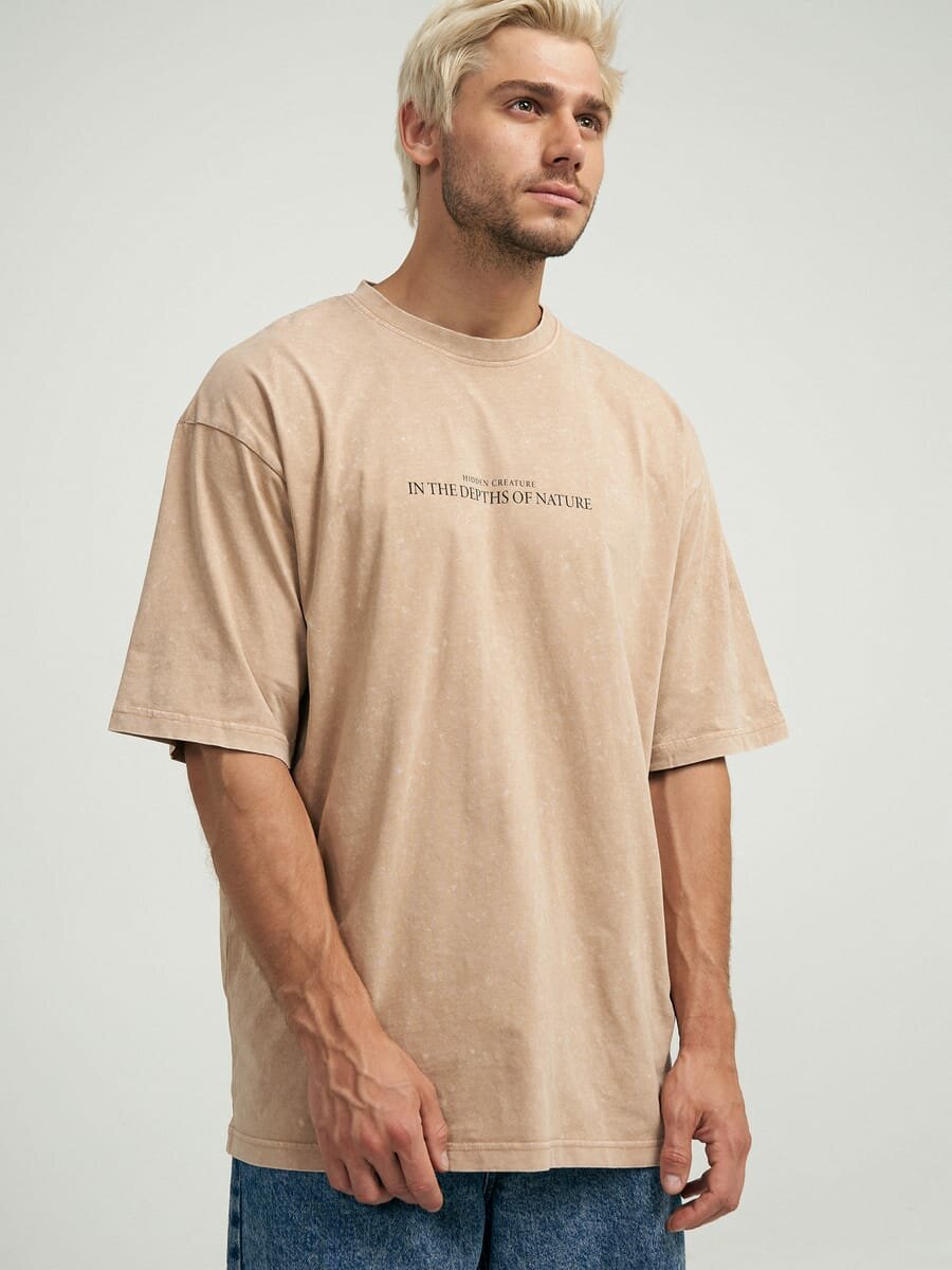 Купить Хлопковая футболка тай-дай варенка с принтом на спине твое, арт. B2977,бежевый,M