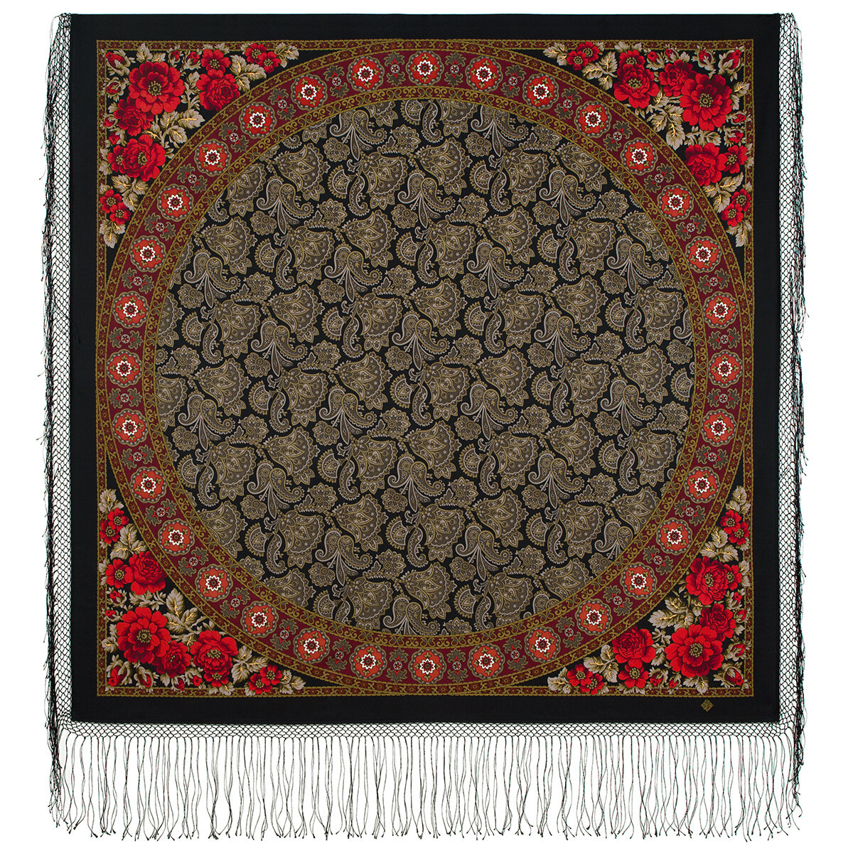 Купить Платок женский шерстяной Павловопосадские платки 1976 Вернисаж 14, черный, 148х148 см