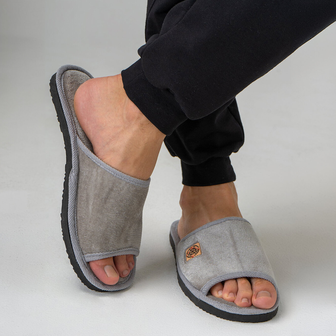 Тапочки домашние открытые пантолеты HappyFox Home HFS1615 серый 40-41