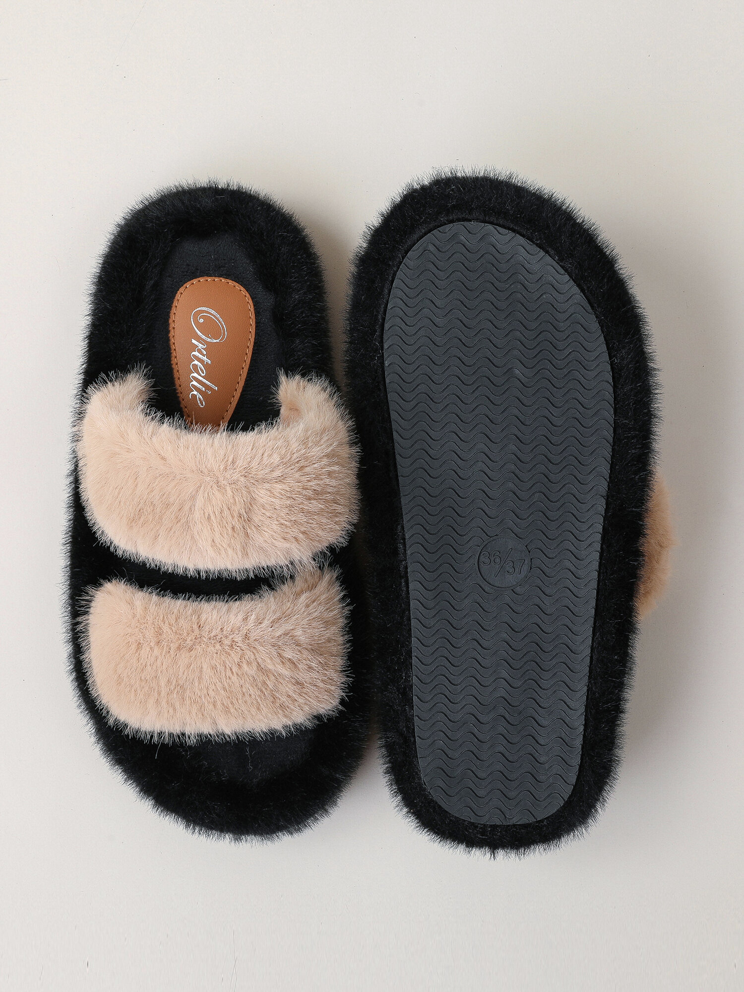 Шлепки меховые женские, тапочки домашние комнатные BE-EL-3 черный Р:36-37