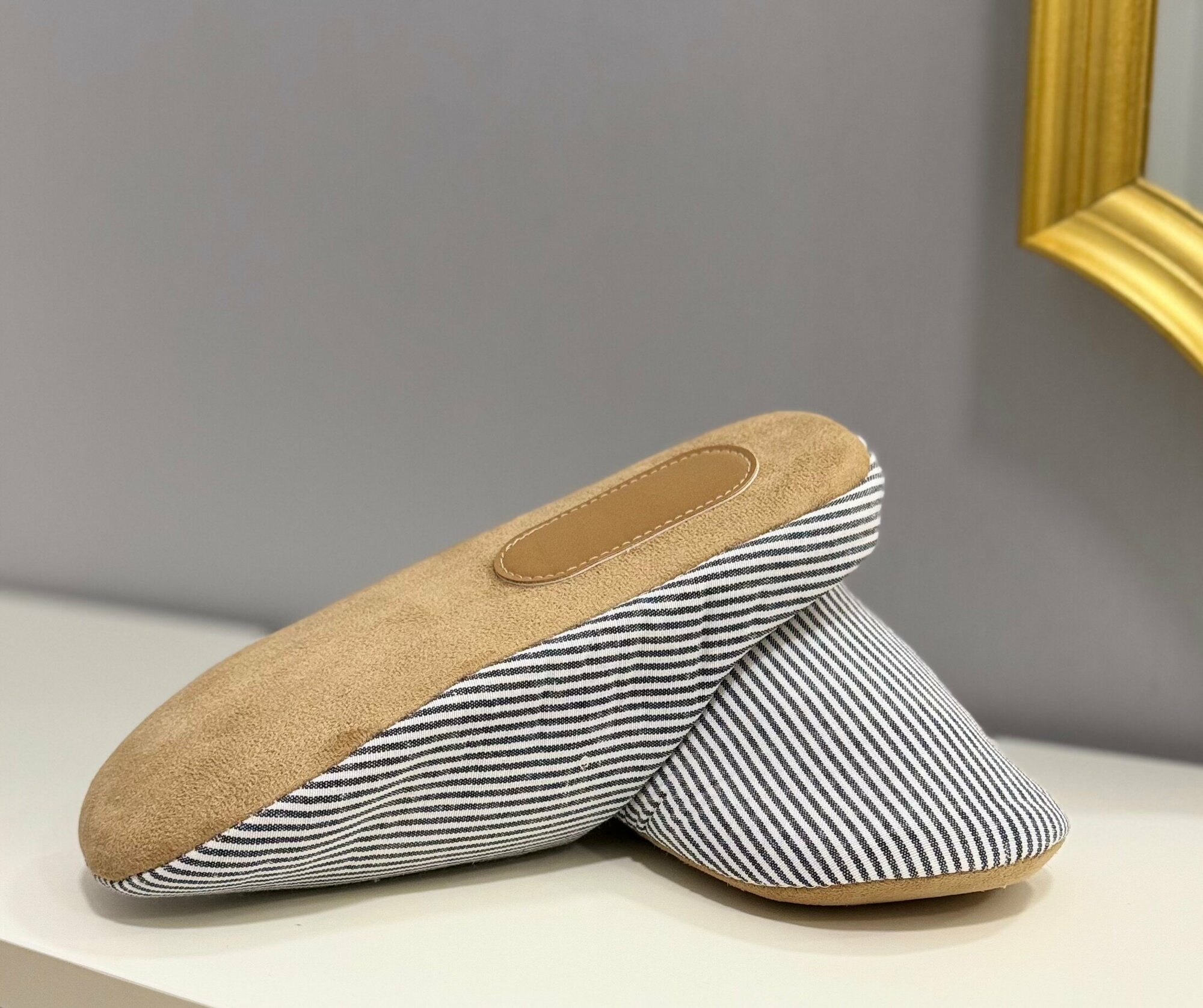 Тапочки домашние в полоску для всей семьи закрытые в японском стиле размер 35-36 S бежевый