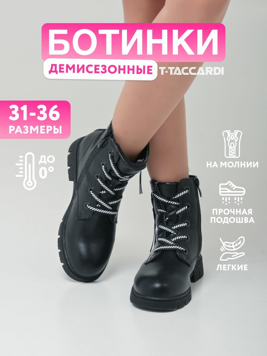 Ботинки детские демисезонные для девочек T.TACCARDI размер 34 цвет черный