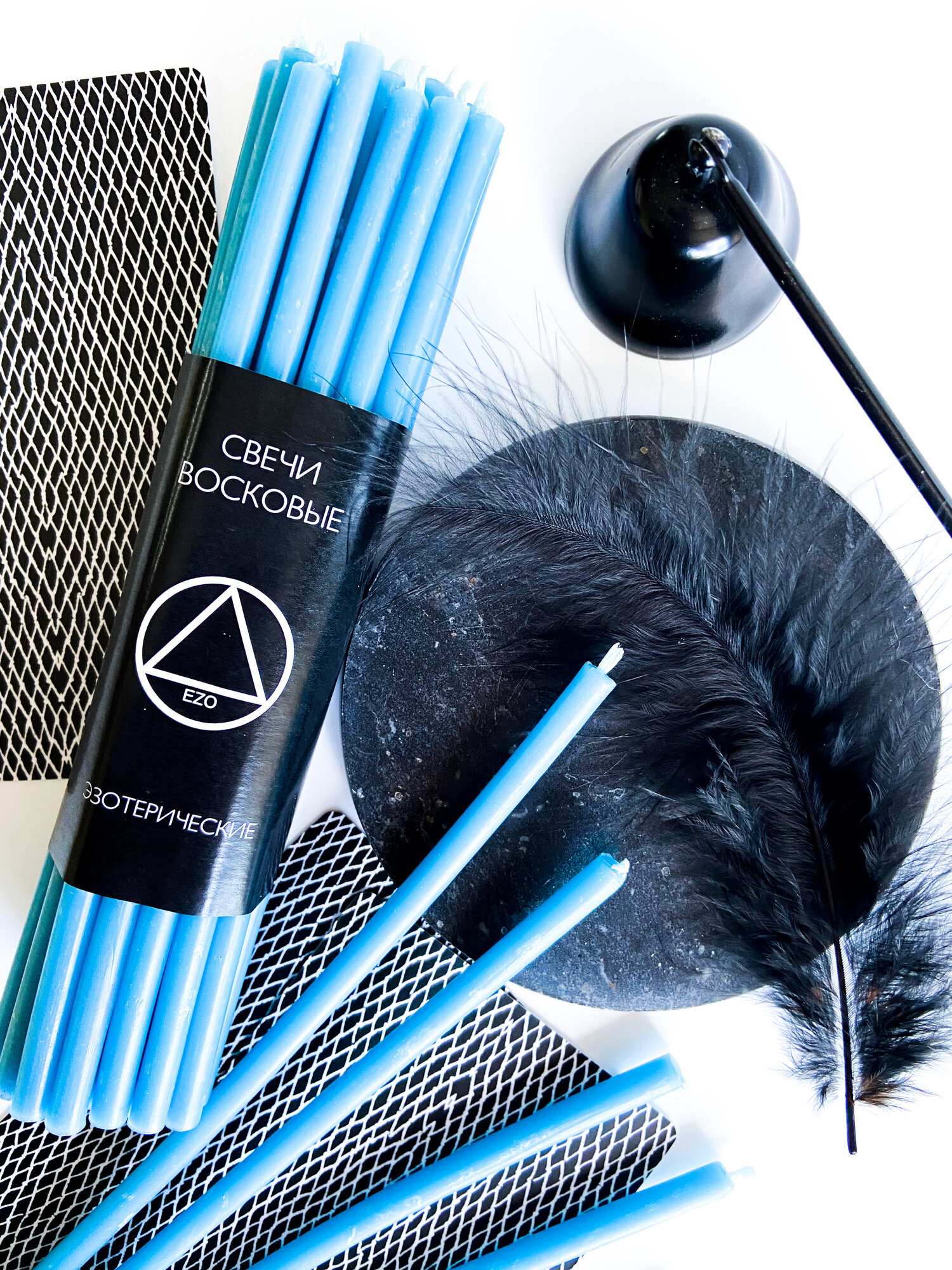 Свечи EZO восковые синие эзотерические, 25 штук