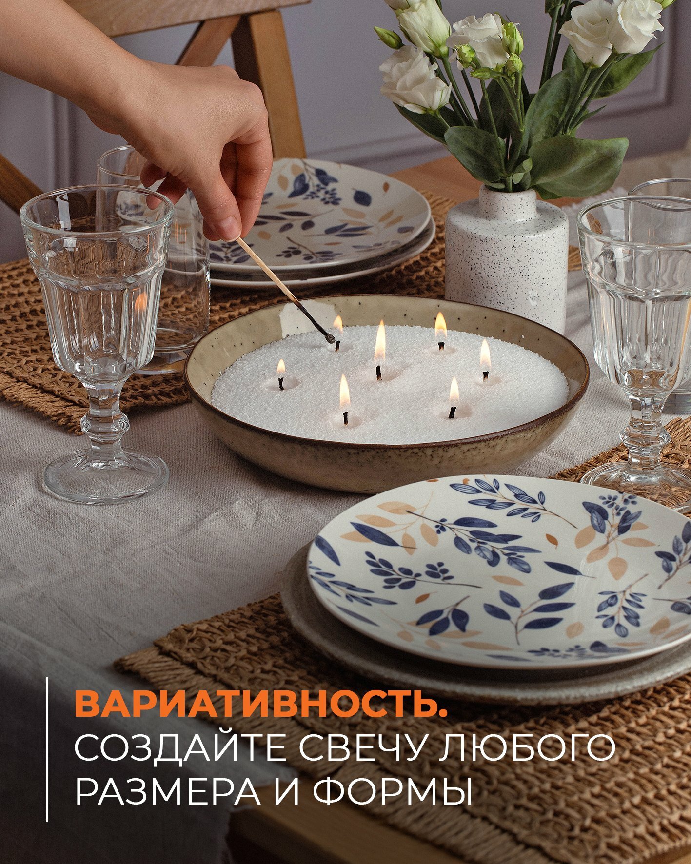 Свечи не ароматические насыпные "RosCandles" серые, 1 кг воска + фитиль 2 м