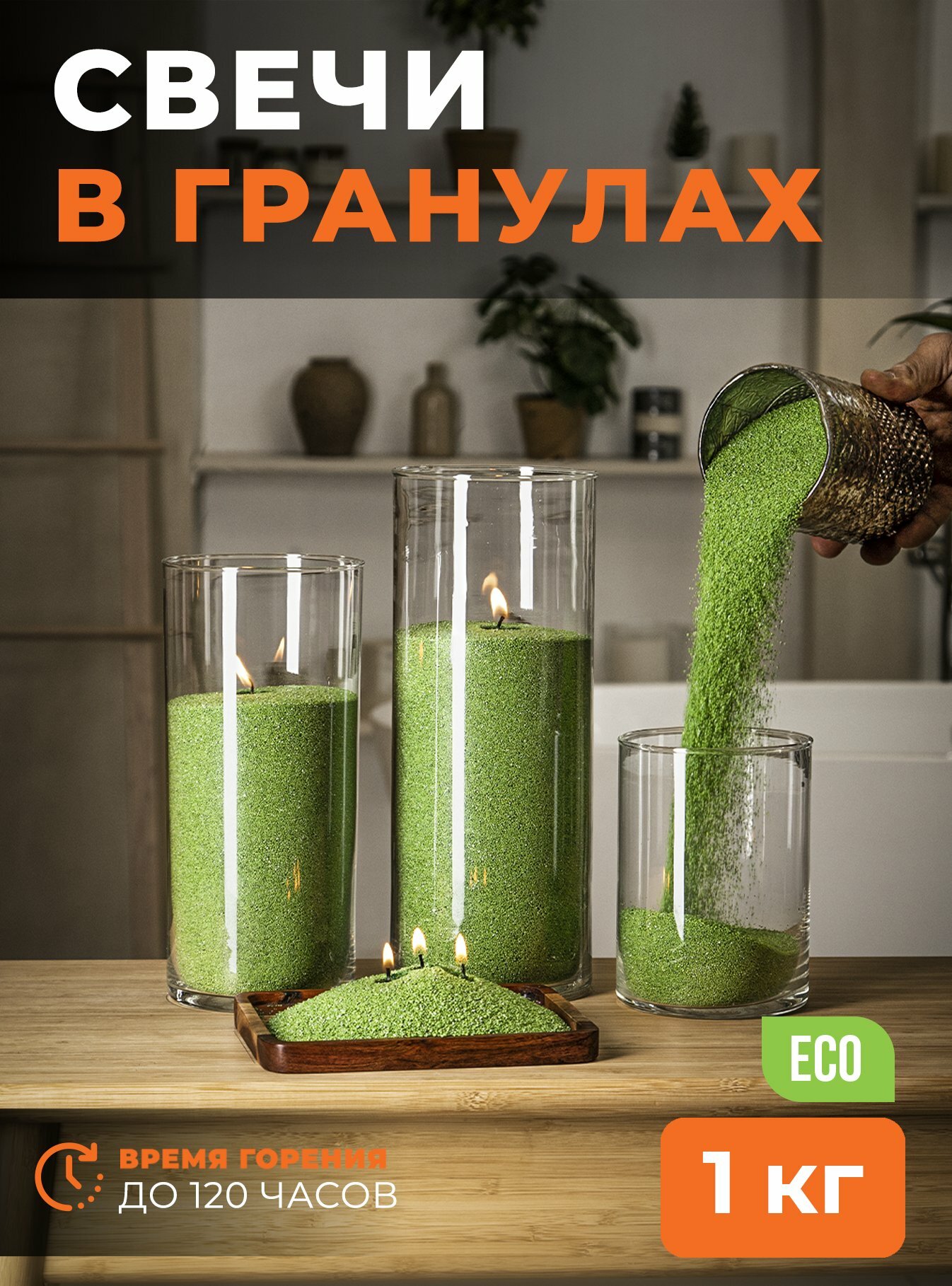 Купить Свечи не ароматические насыпные "RosCandles" зеленые, 1 кг воска + фитиль 2 м