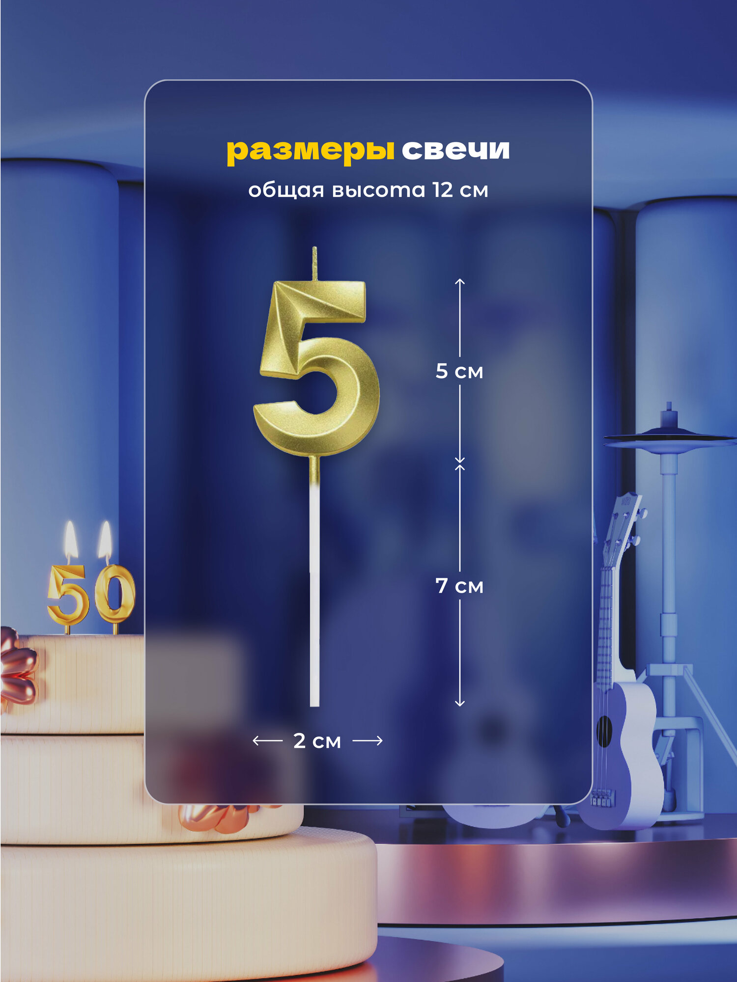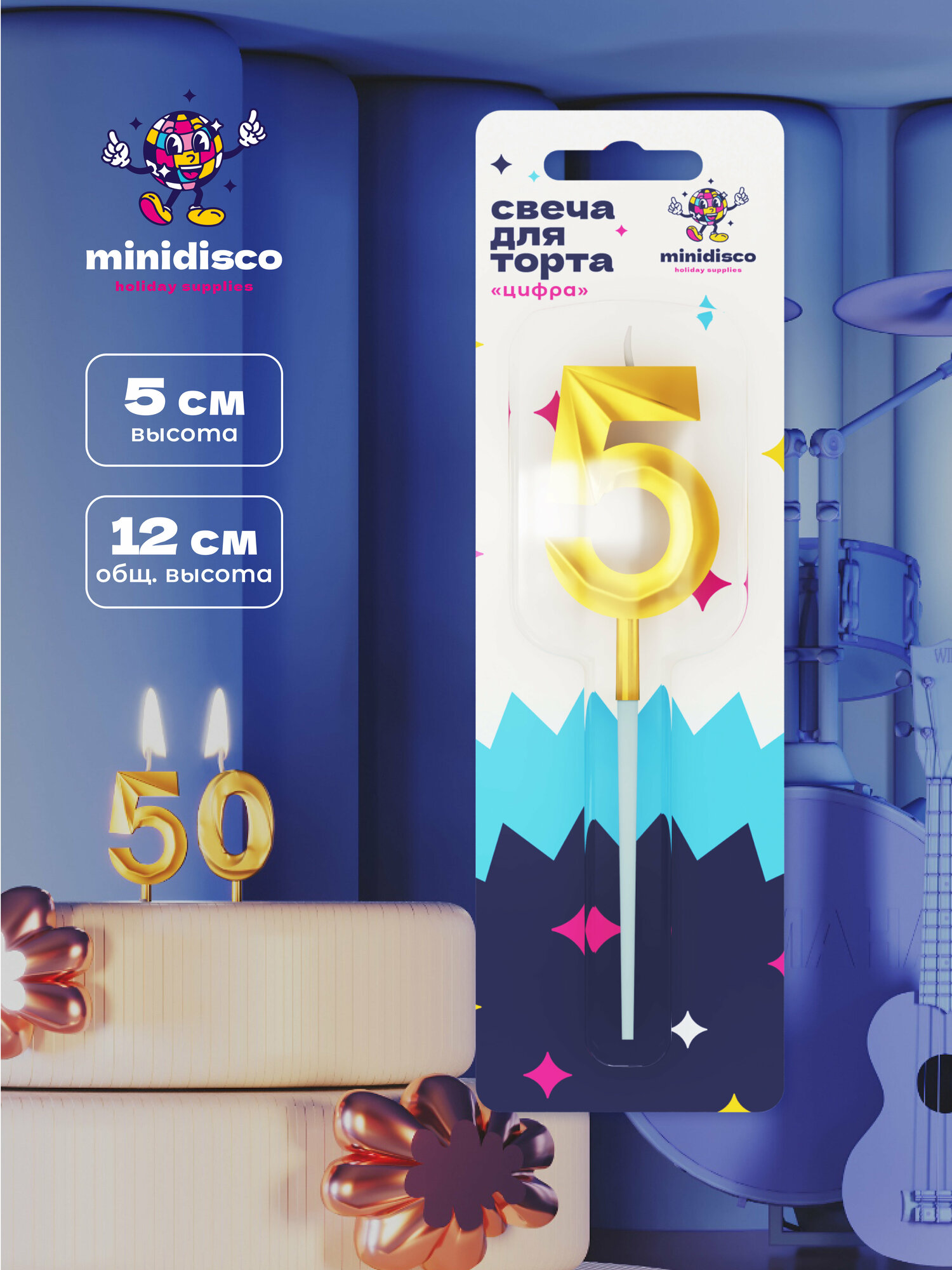 Купить Свеча для торта «Цифра 5» золотая 5 см, 1 шт, Минидиско