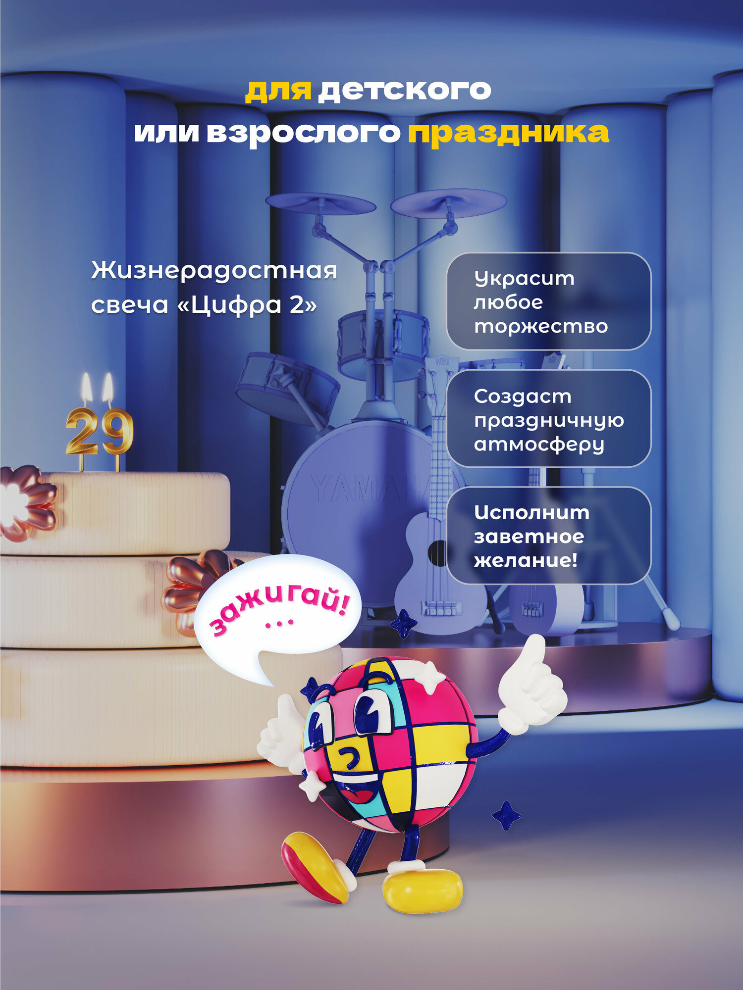 СохранитьЗолотая свеча для торта "Цифра 2" от бренда Minidisco интересное: