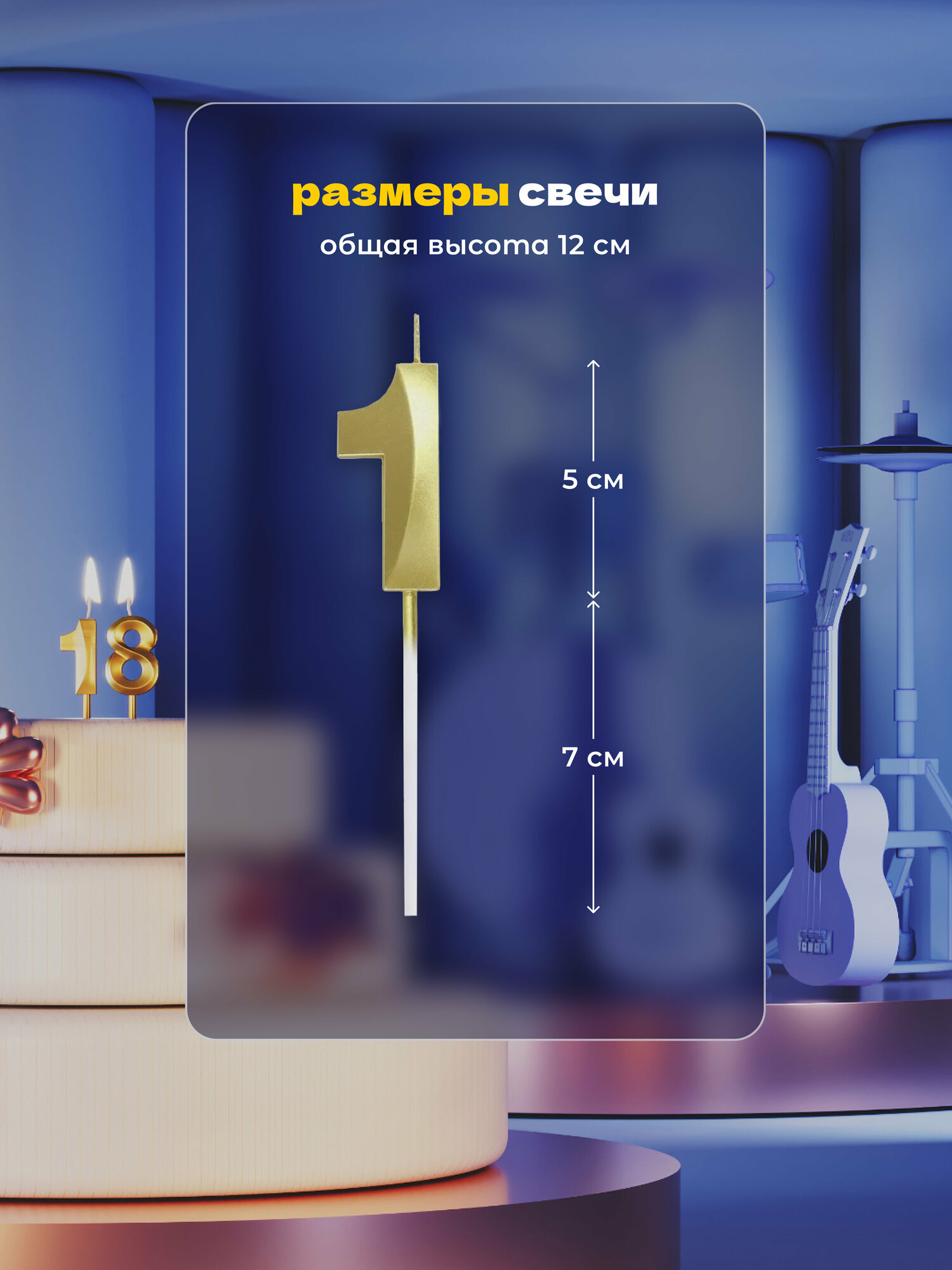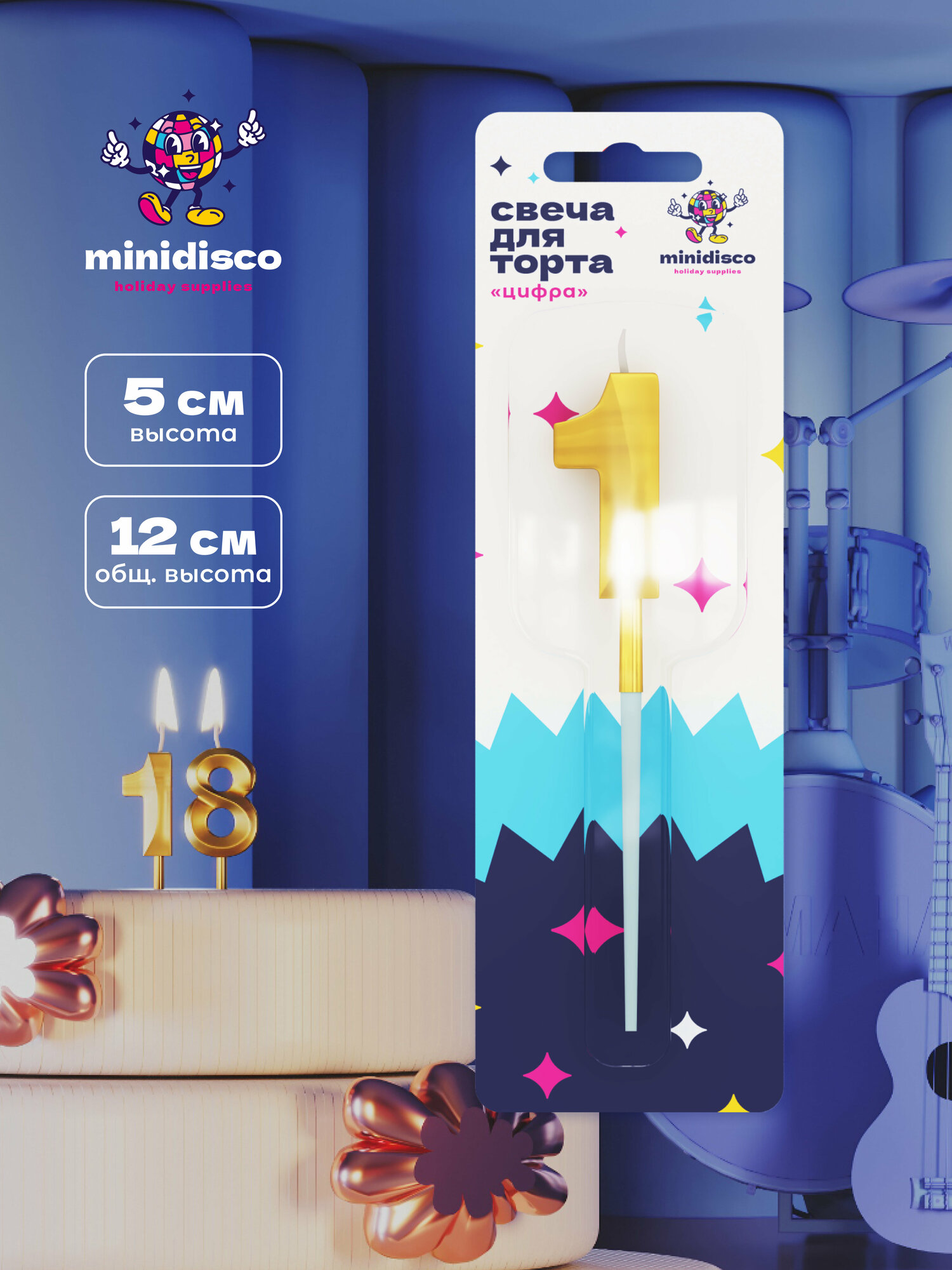 Купить Свеча для торта «Цифра 1» золотая 5 см, 1 шт, бренд Minidisco