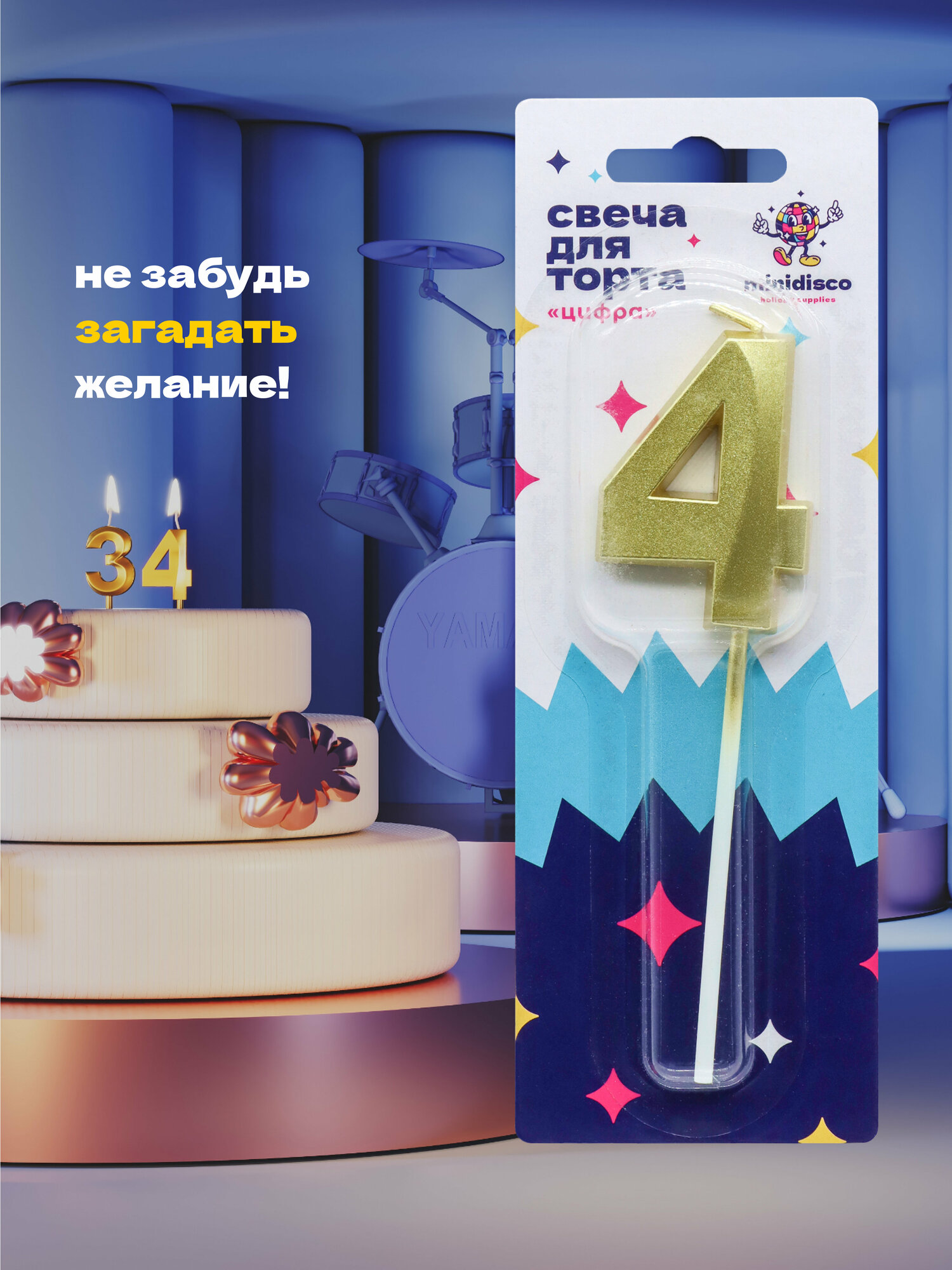 СохранитьЗолотая свеча для торта "Цифра 4" от бренда Minidisco интересное: