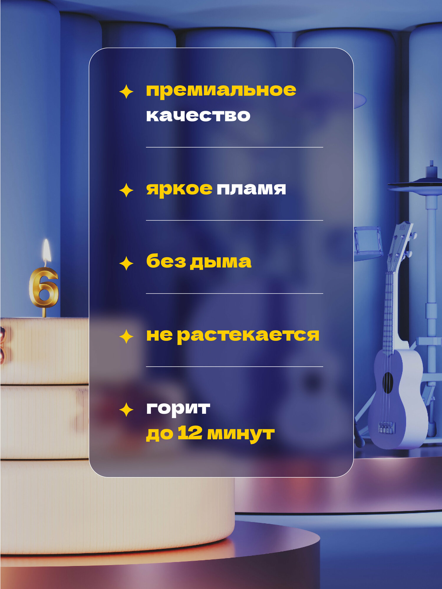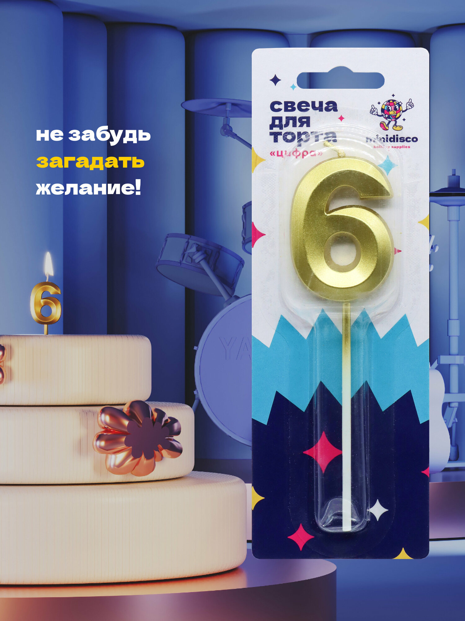 СохранитьСвеча для торта «Цифра 6» золотая 5 см, 1 шт, Minidisco интересное: