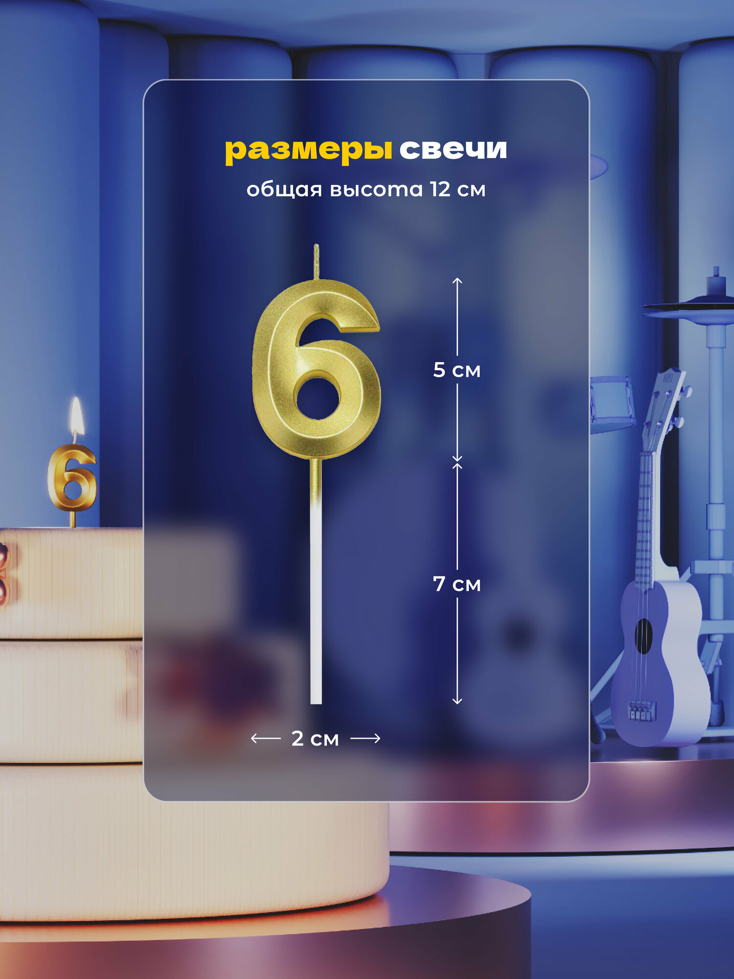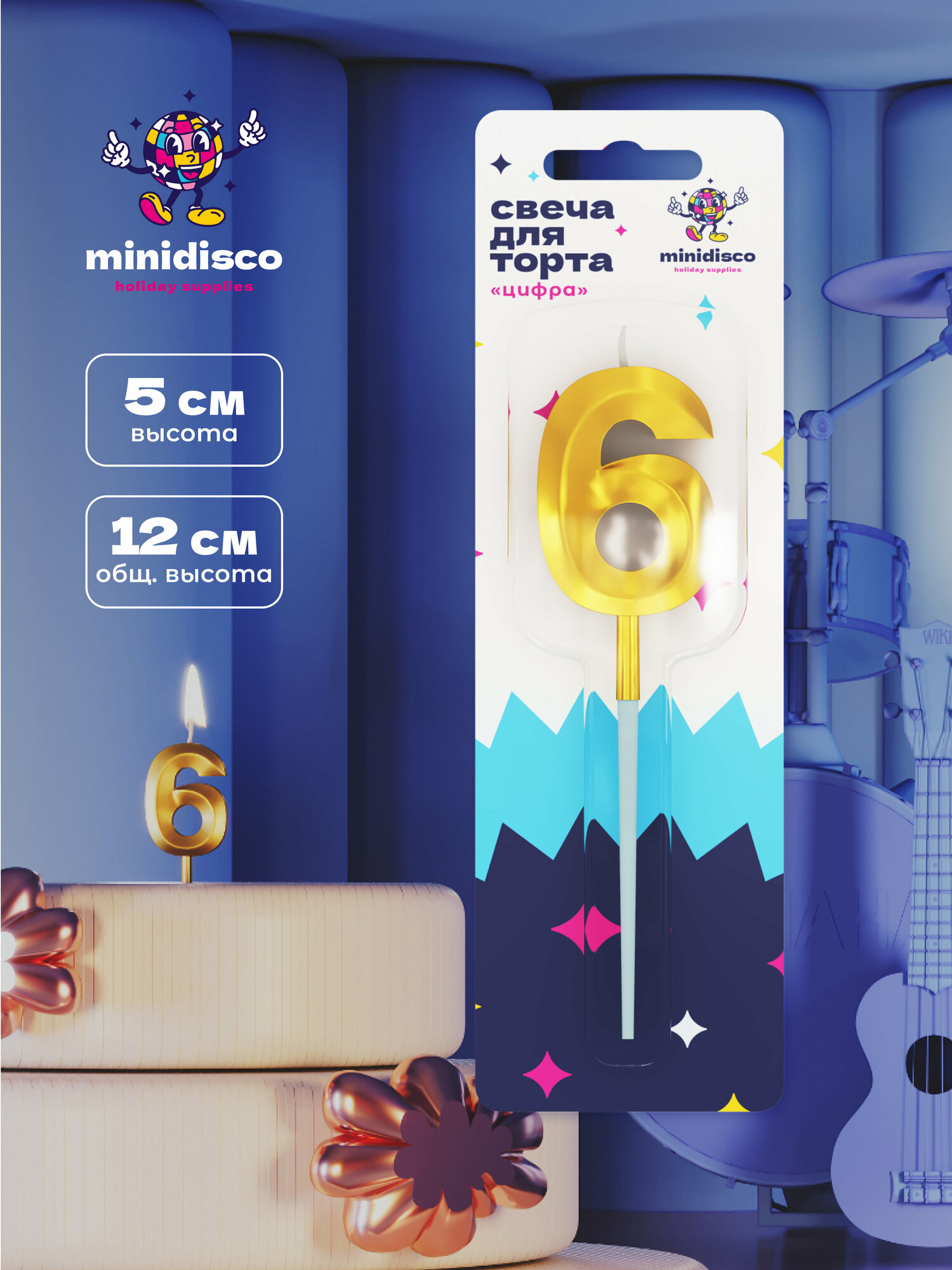 Купить Свеча для торта «Цифра 6» золотая 5 см, 1 шт, Minidisco