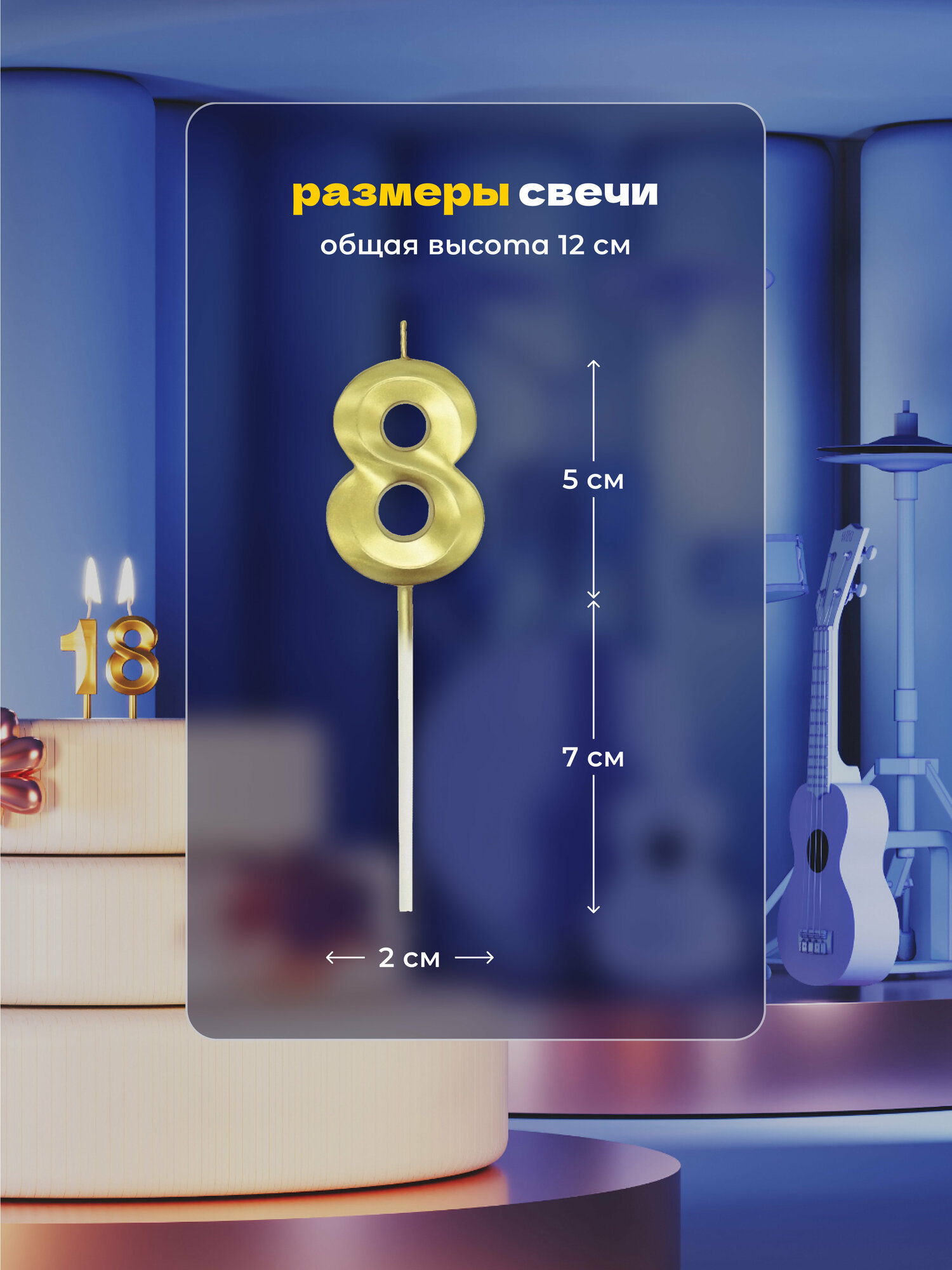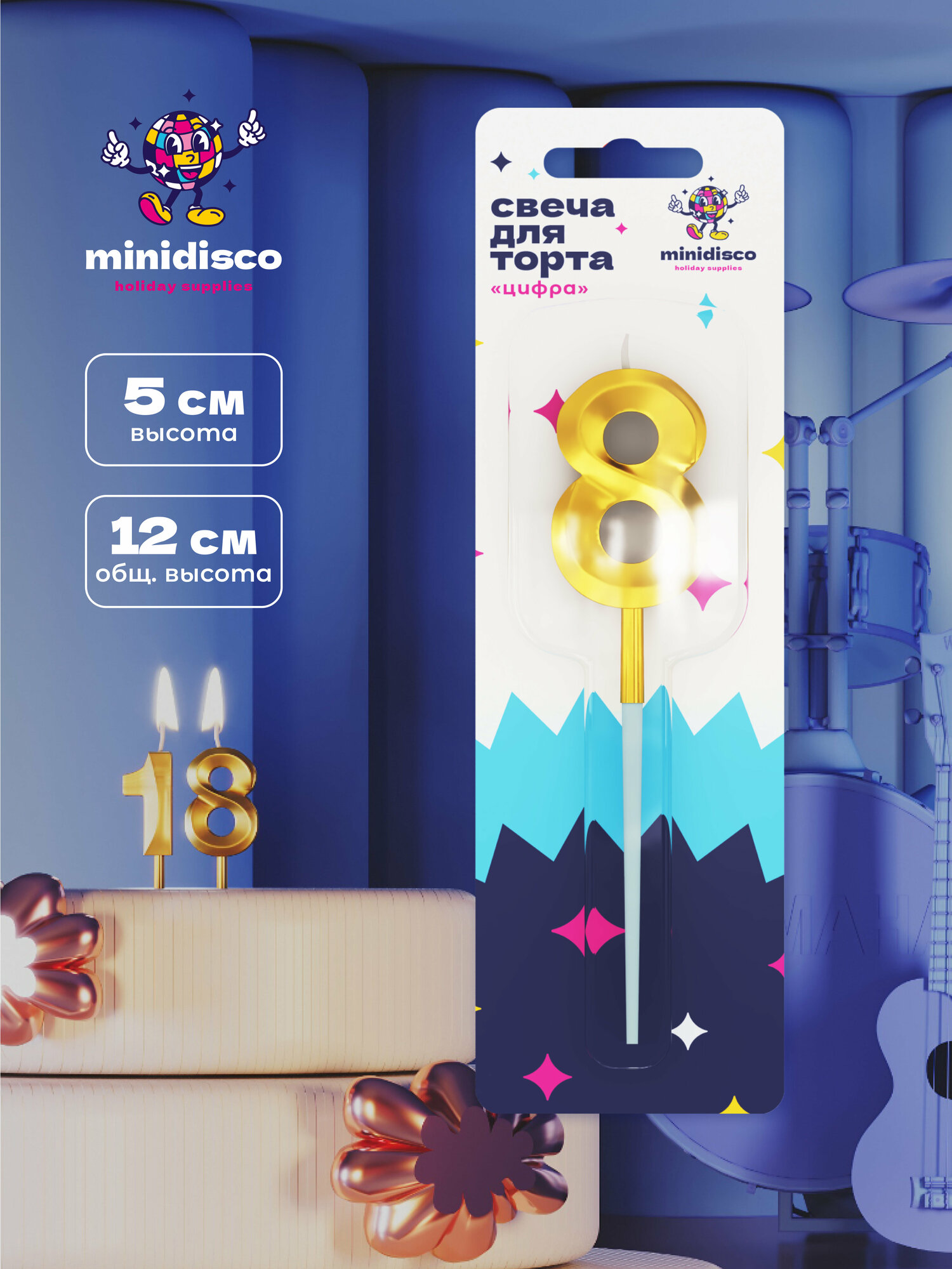 Купить Свеча для торта «Цифра 8» золотая 5 см, 1 шт, Minidisco
