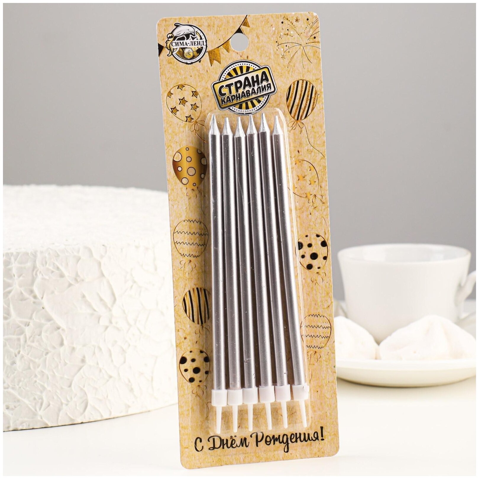 Свечи в торт "Радость", 6 шт, высокие, 13 см, серебристый металлик 4710821