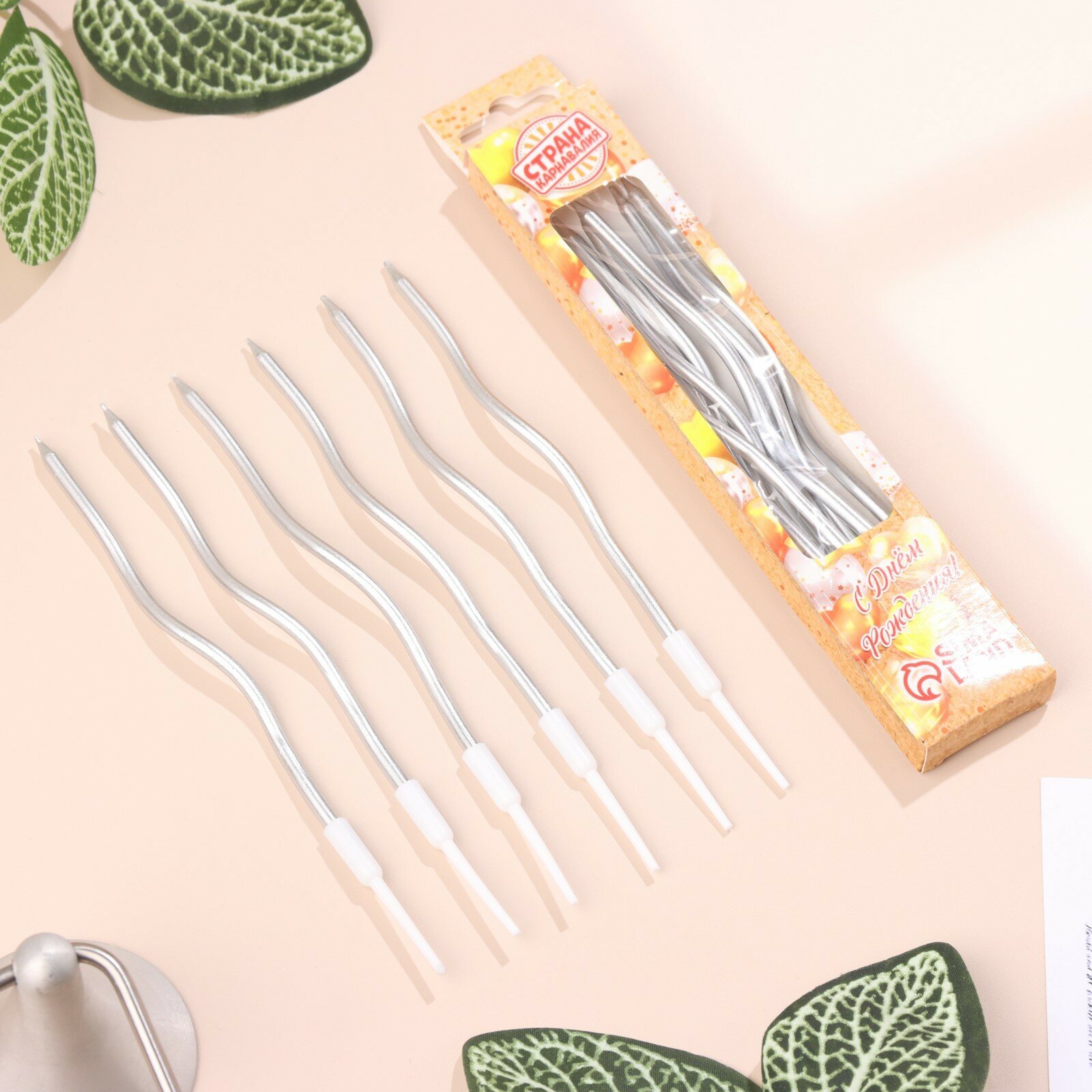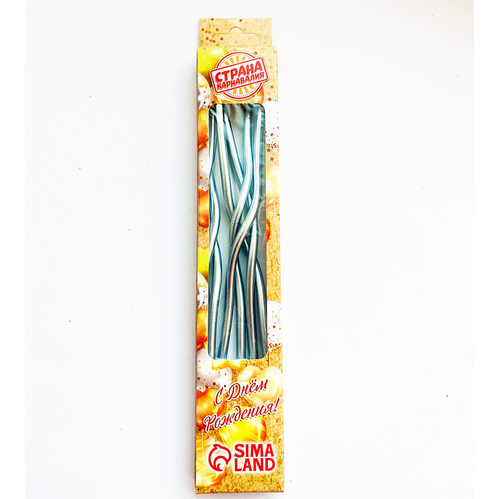 Купить Свечи для торта "Серпантин" 6 шт, коктейльные, серебристые