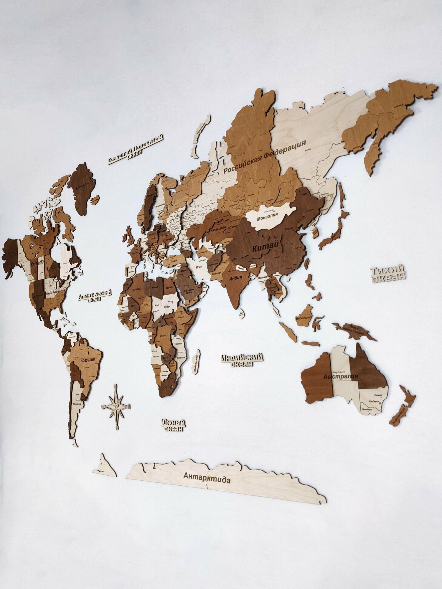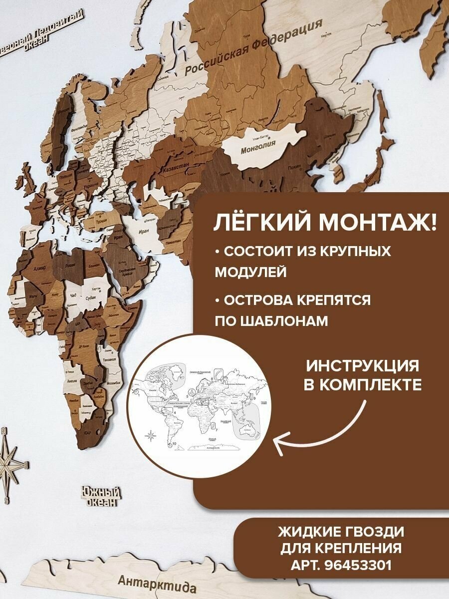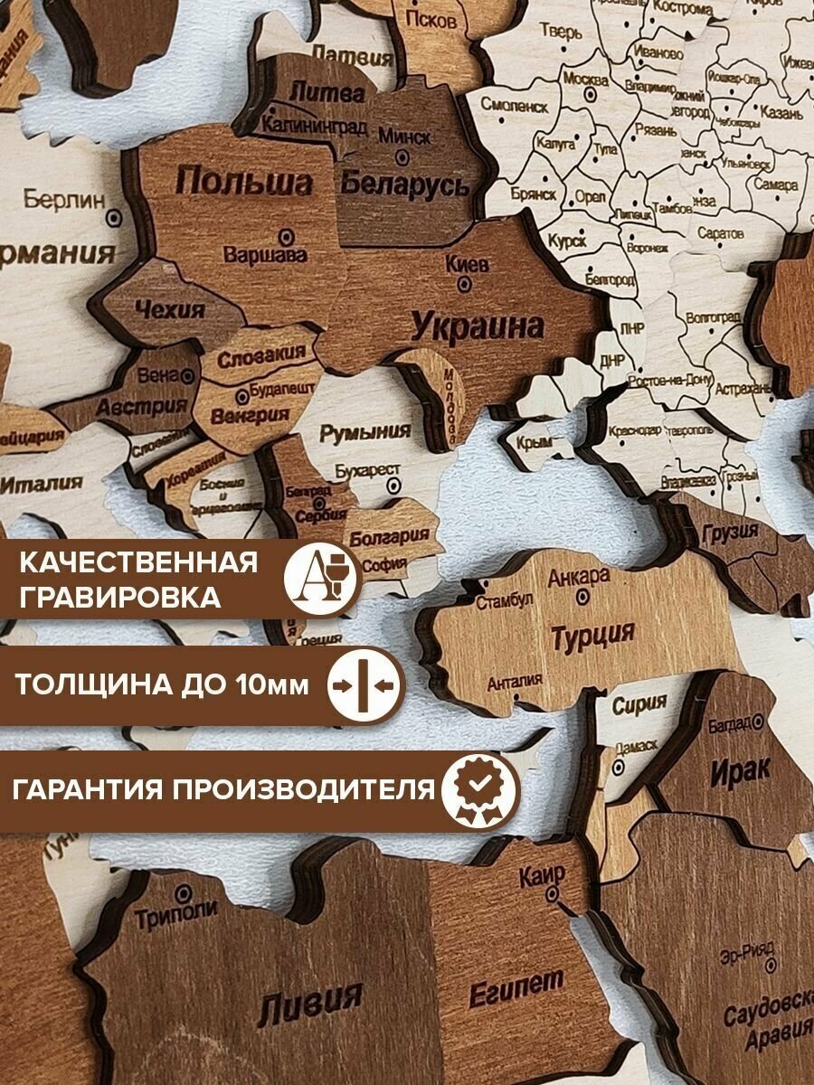 3D Карта мира из дерева 180х110см многоуровневая интересное: