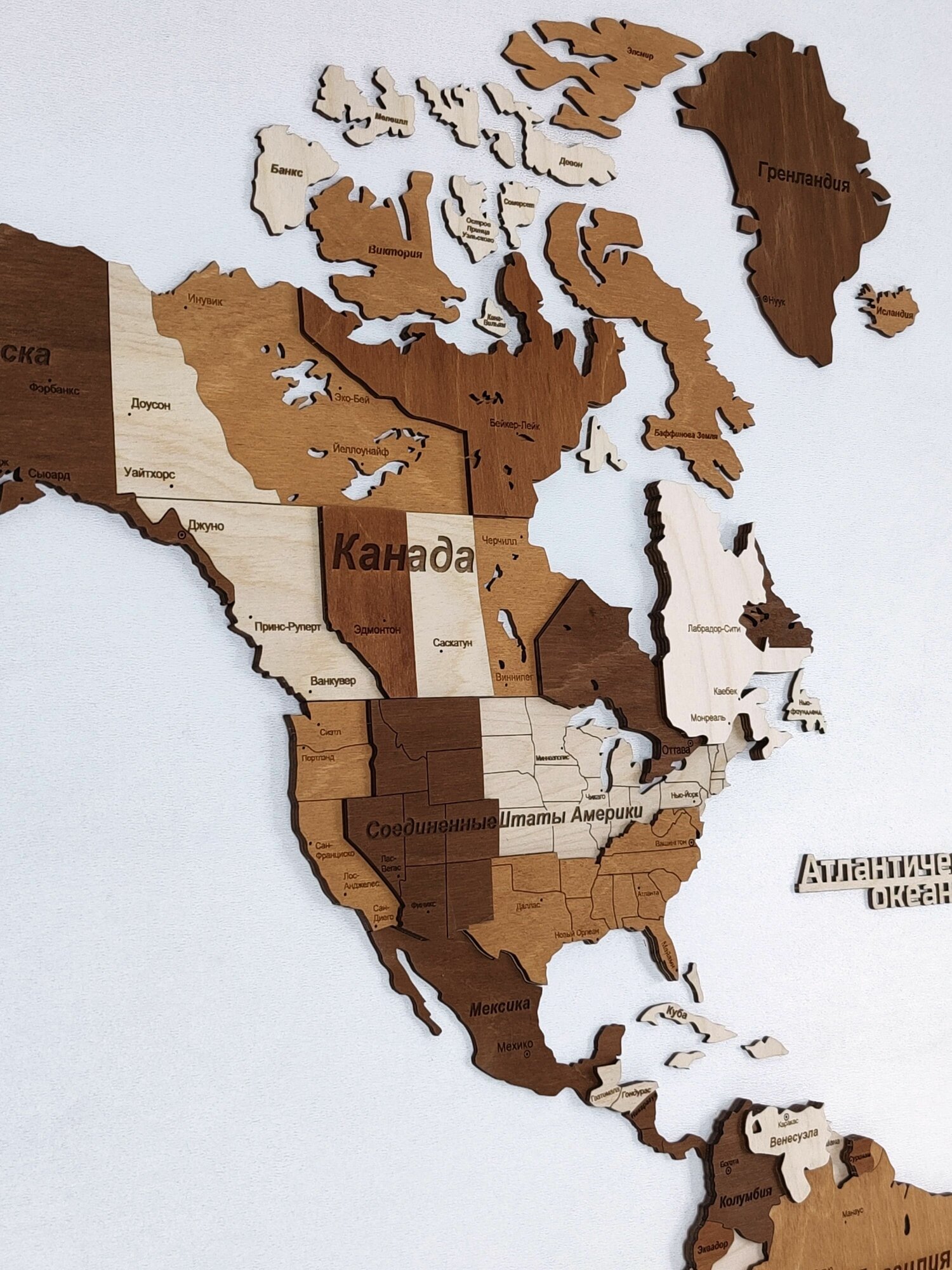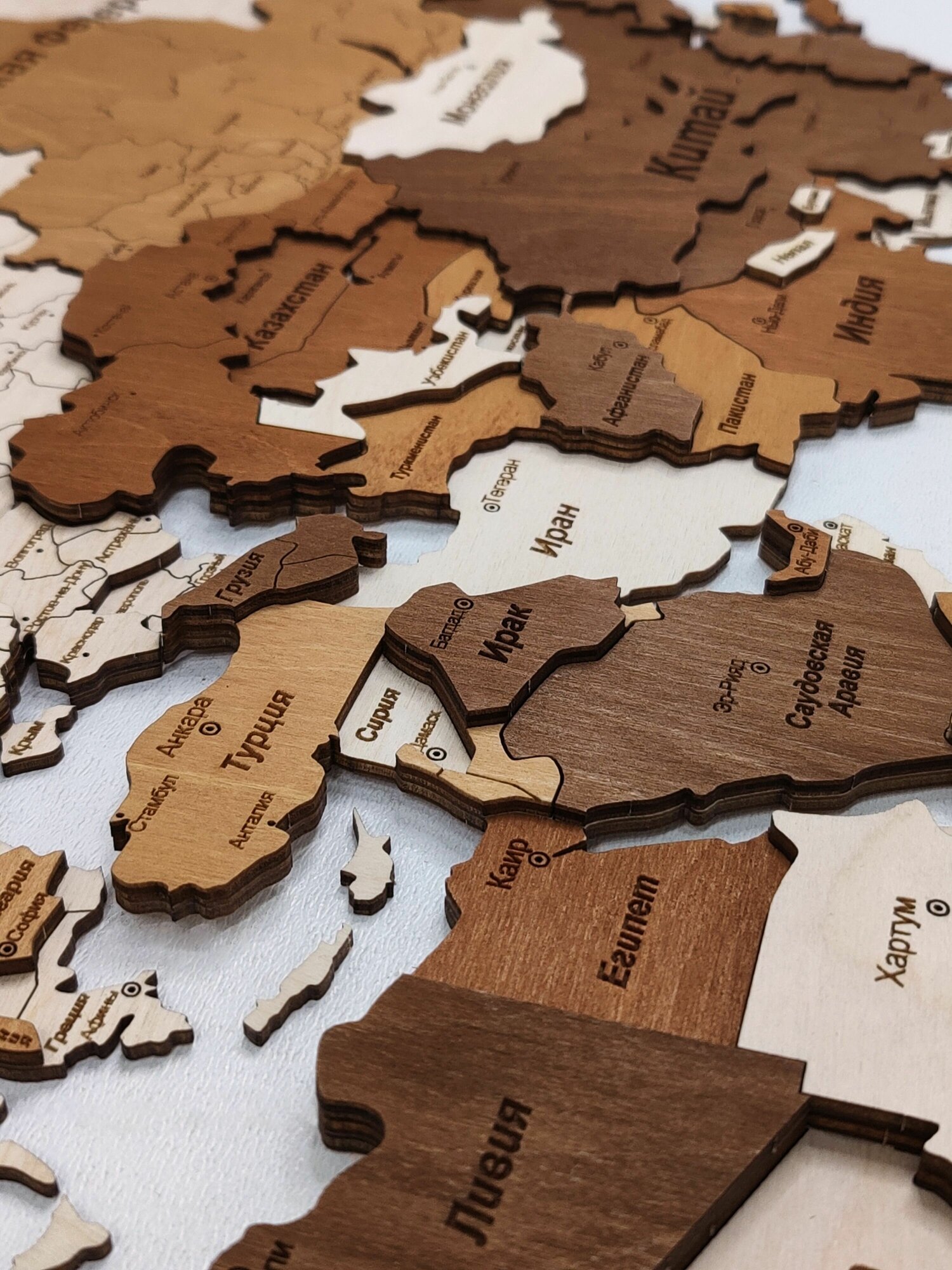 Купить 3D Карта мира из дерева 180х110см многоуровневая