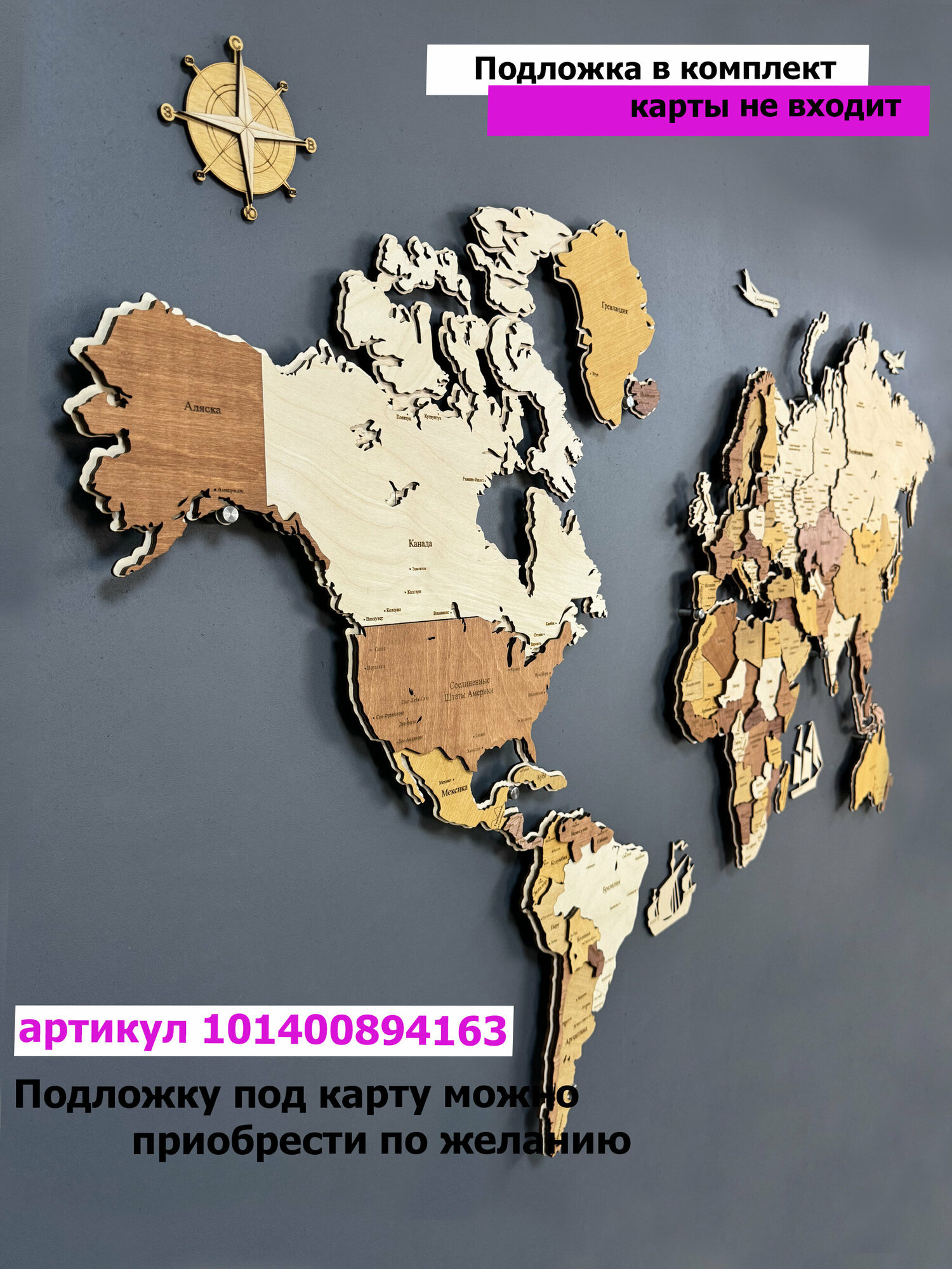 3Д - Карта мира на стену 1600*950 из дерева/ многоцветная/ настенный декор/ iz lesa интересное: