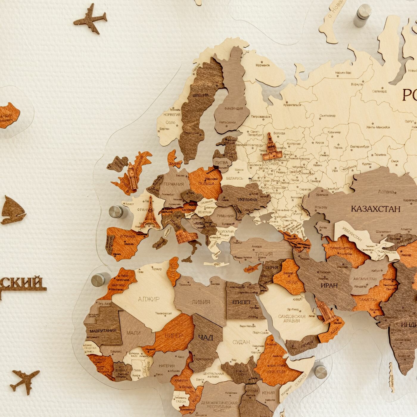 Карта мира из дерева настенная 160x100 см интересное: