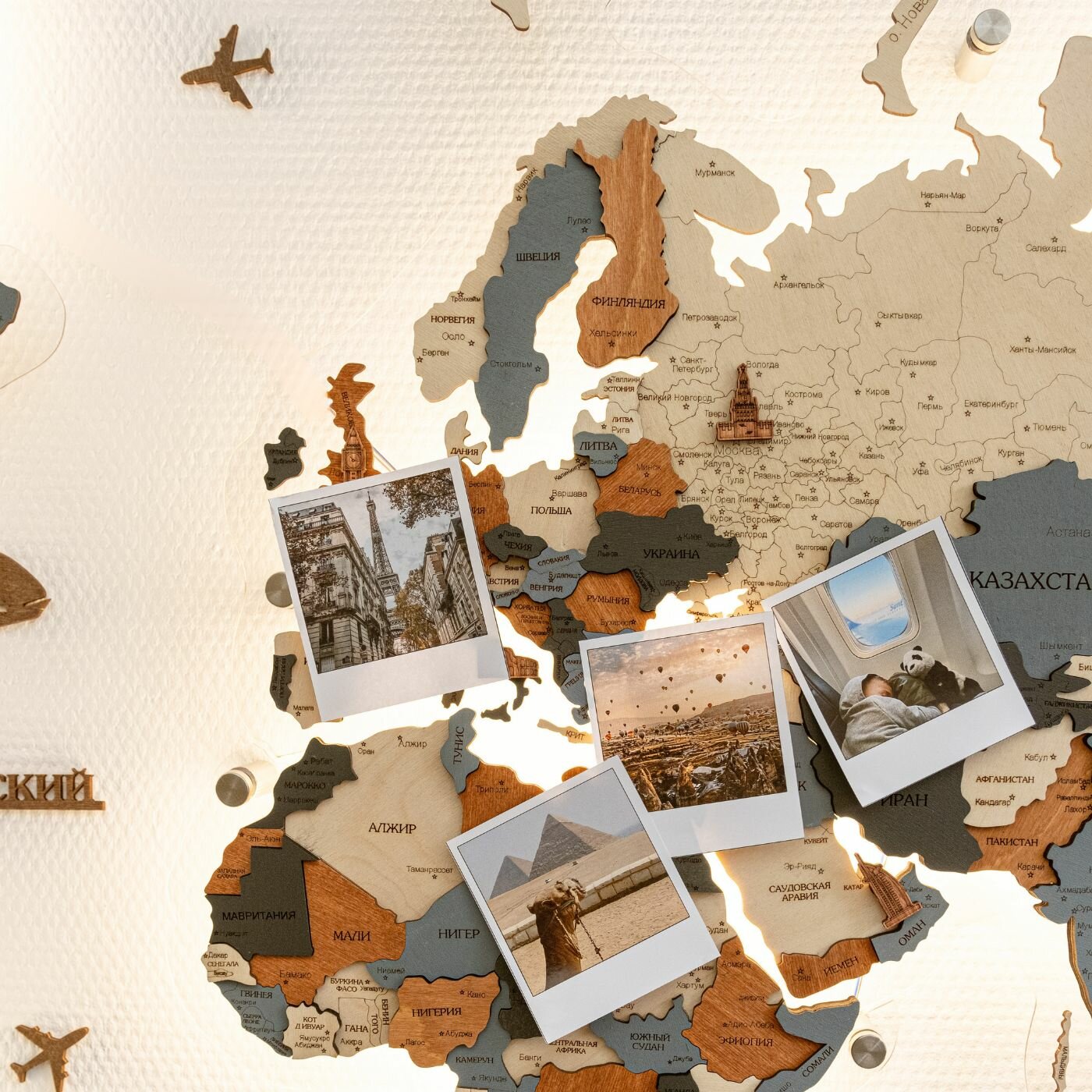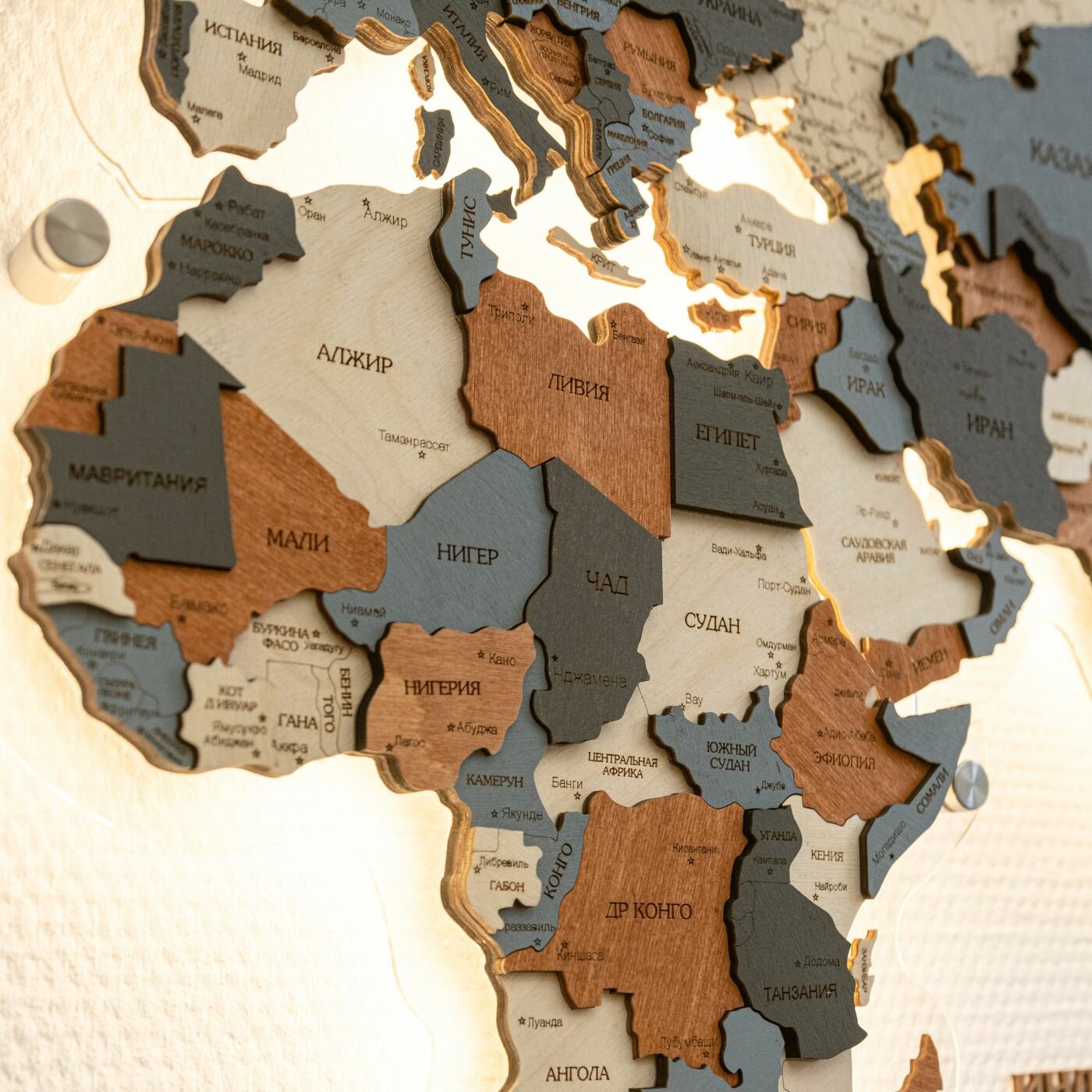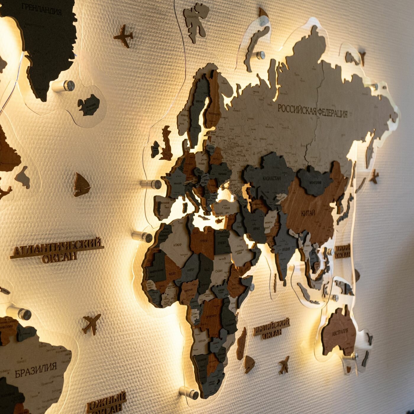 Карта мира из дерева настенная с подсветкой 160x100 см интересное:
