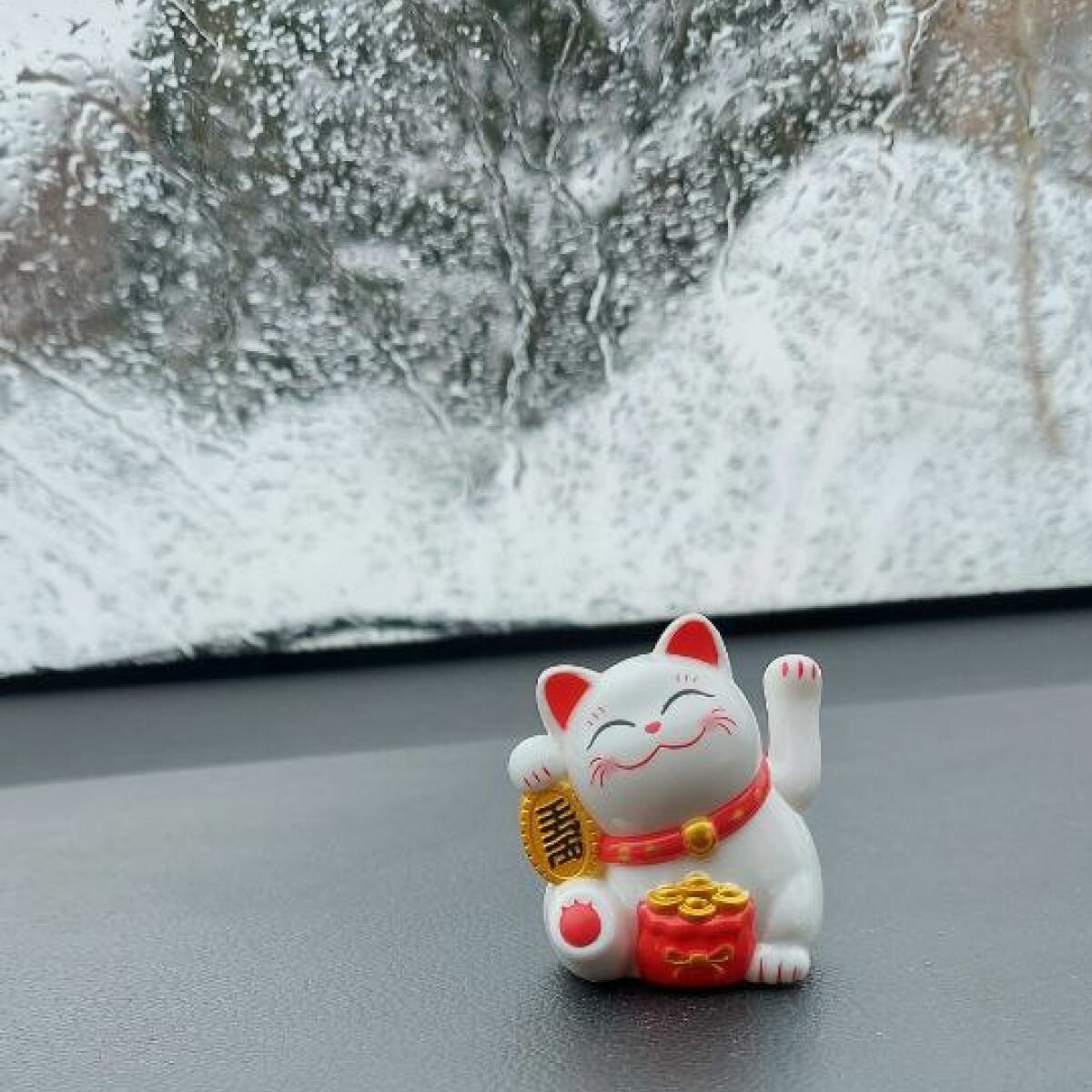 Денежный котик Манэки-Нэко машет лапкой в авто
