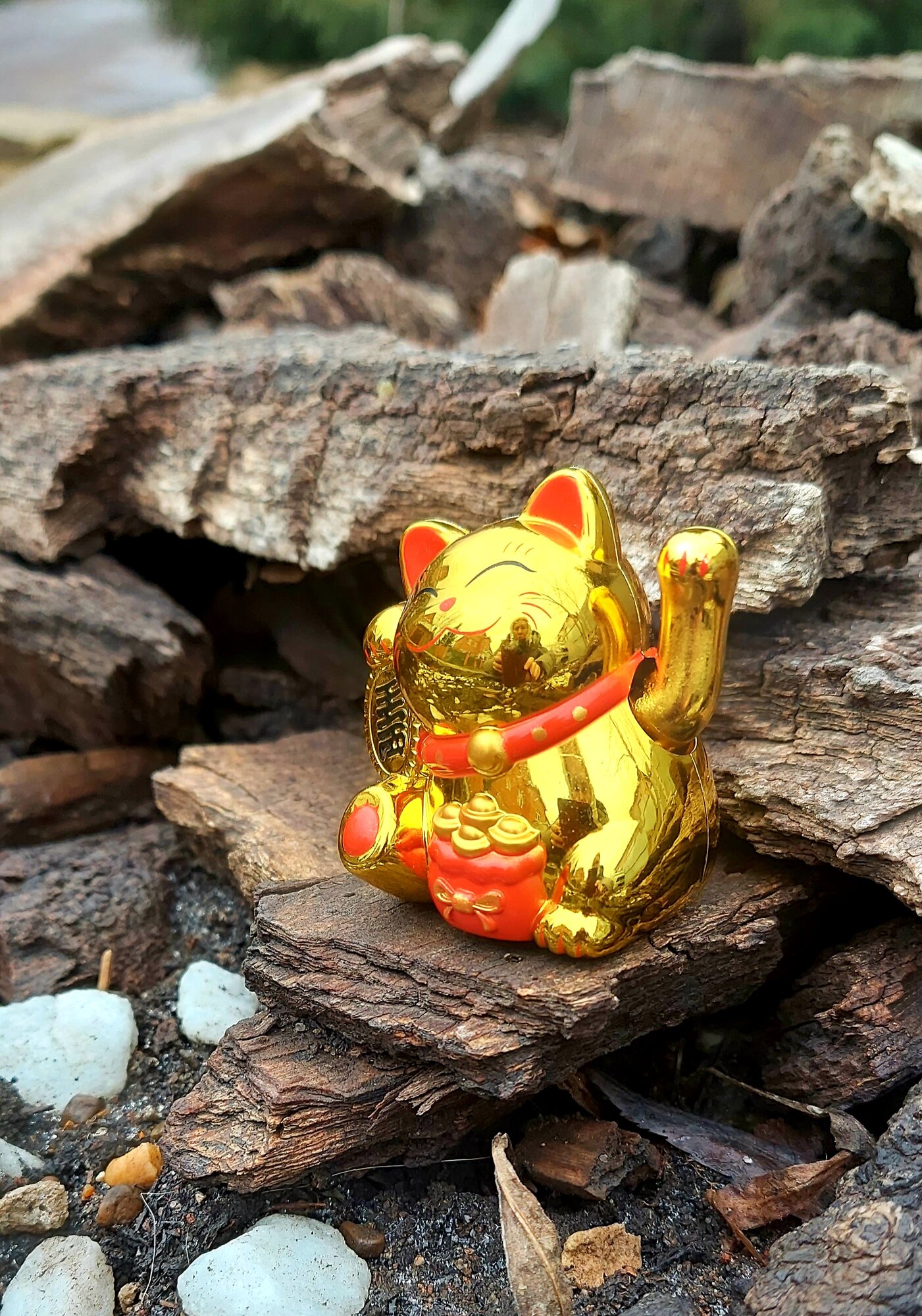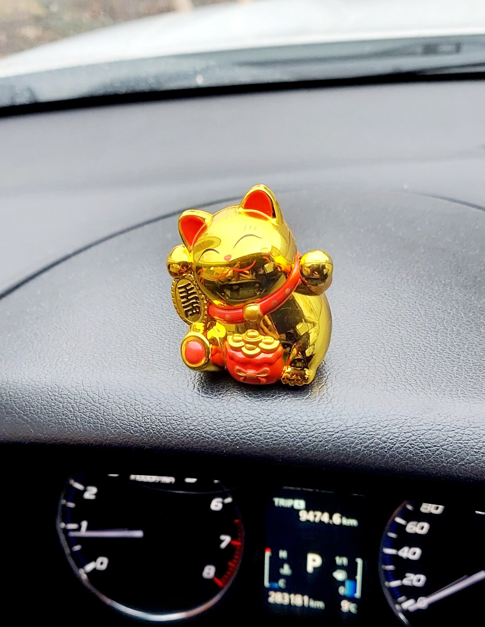 Денежный котик Манэки-Нэко машет лапкой в авто, цвет золотой