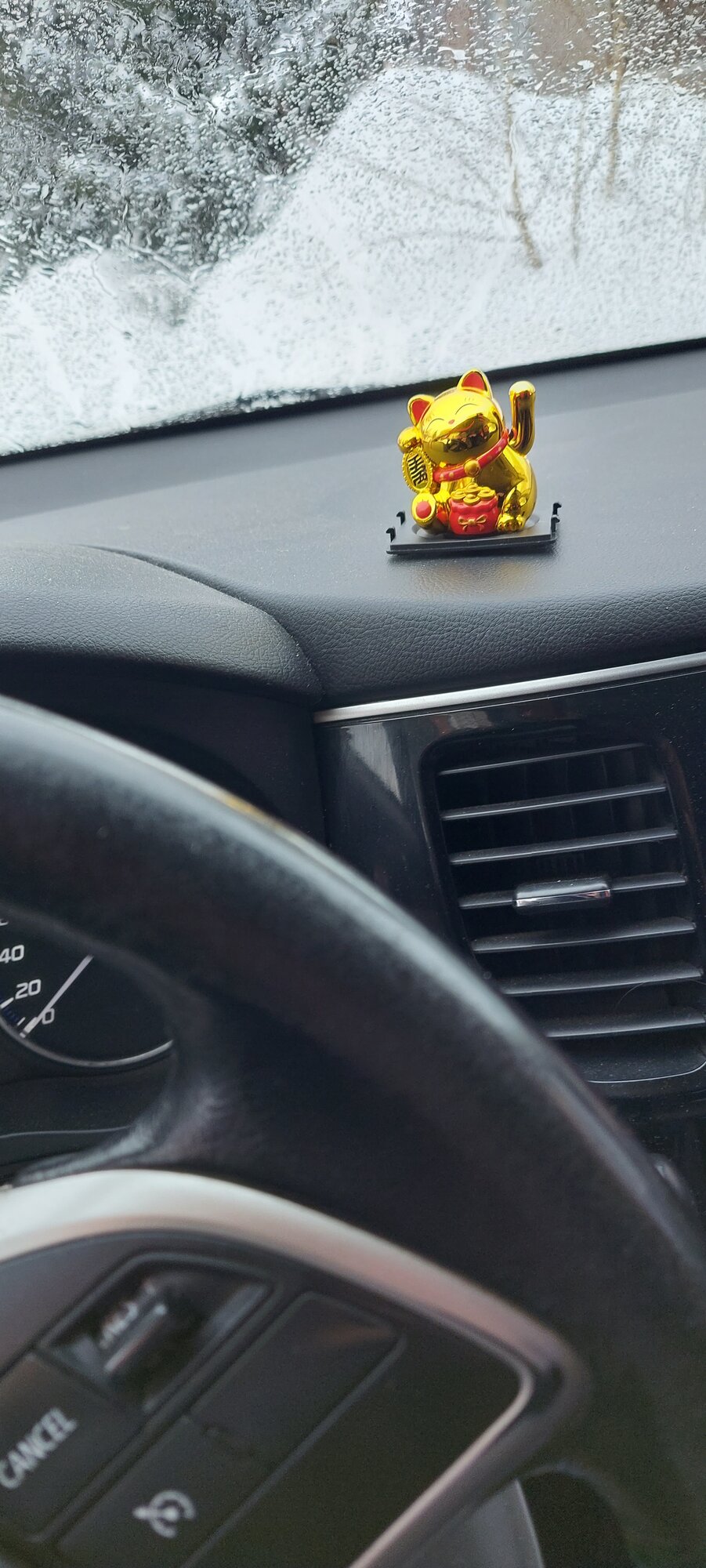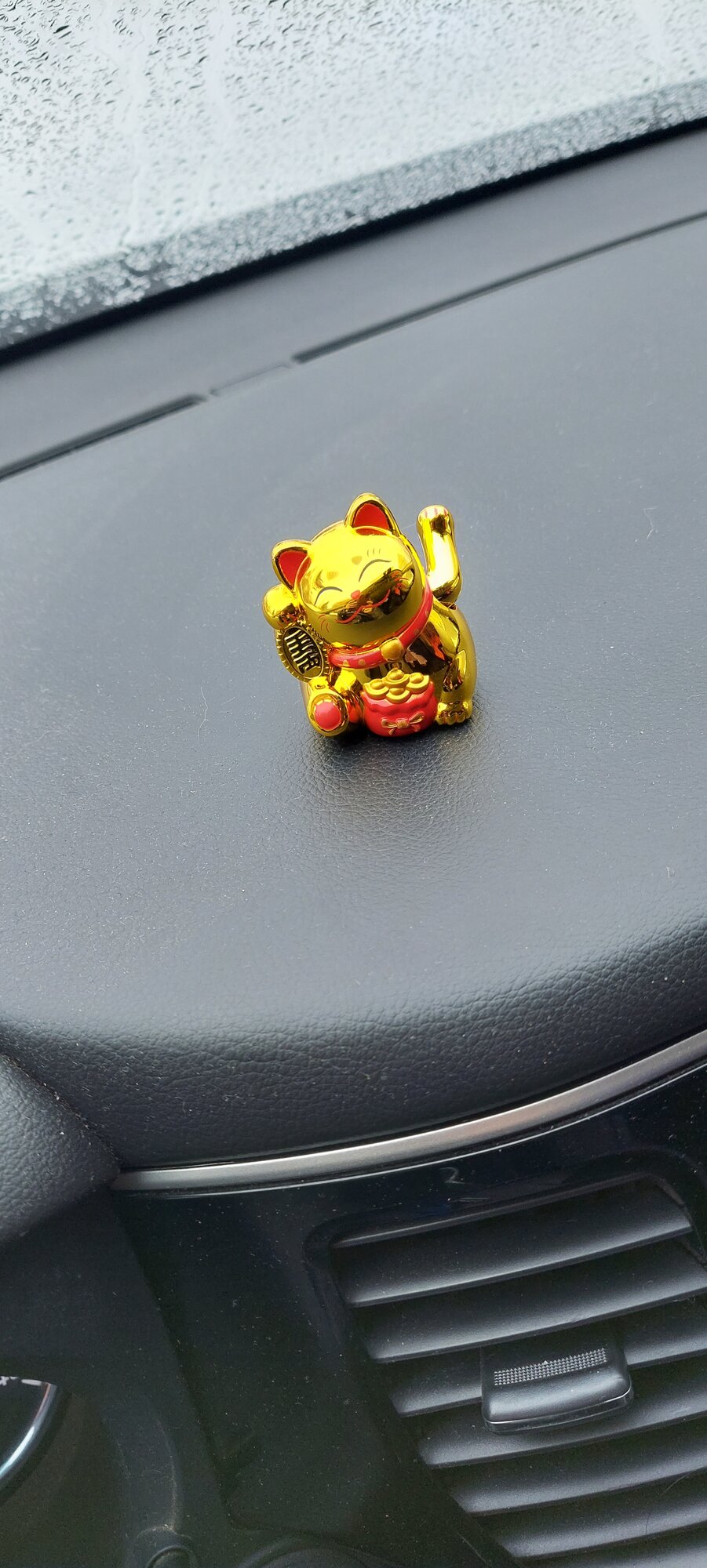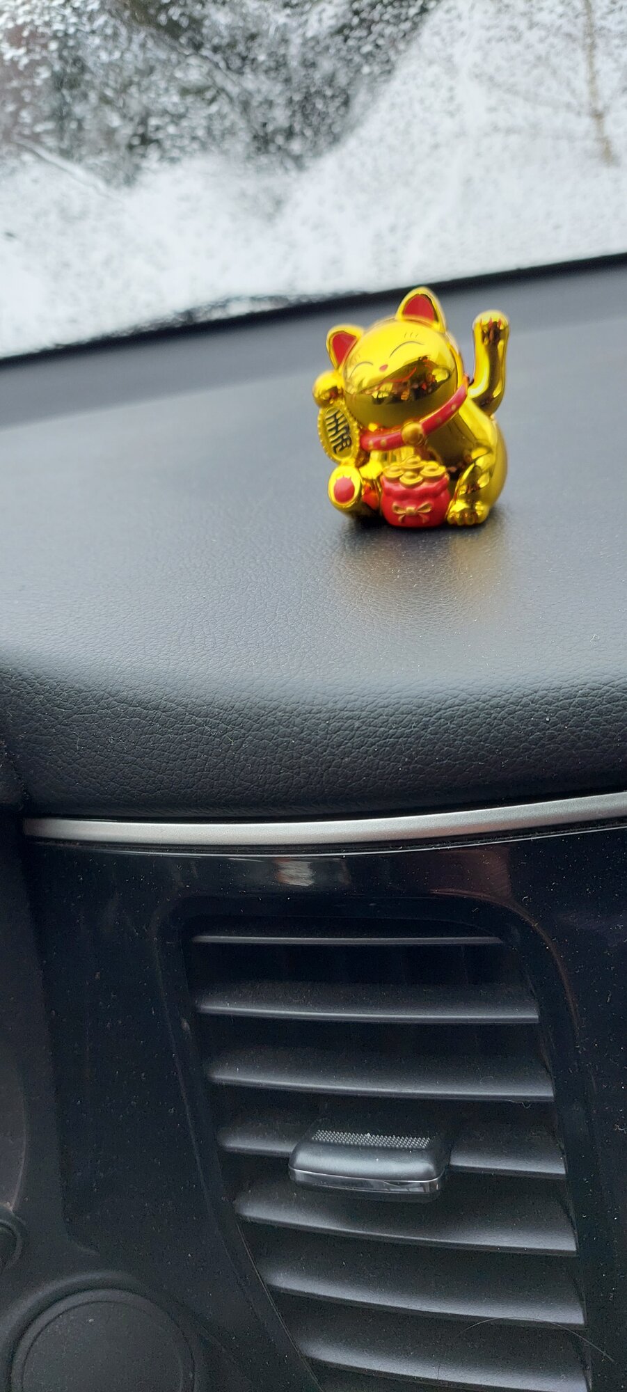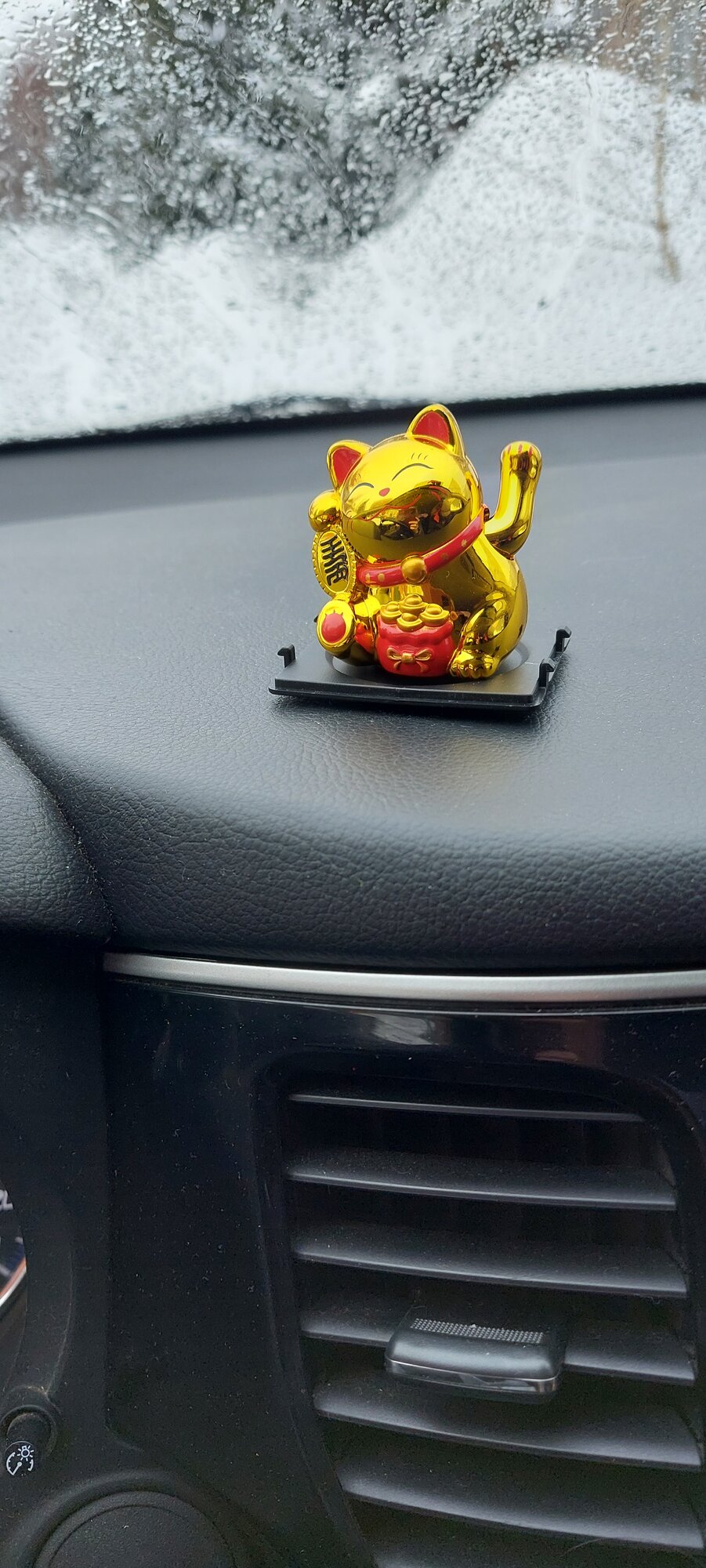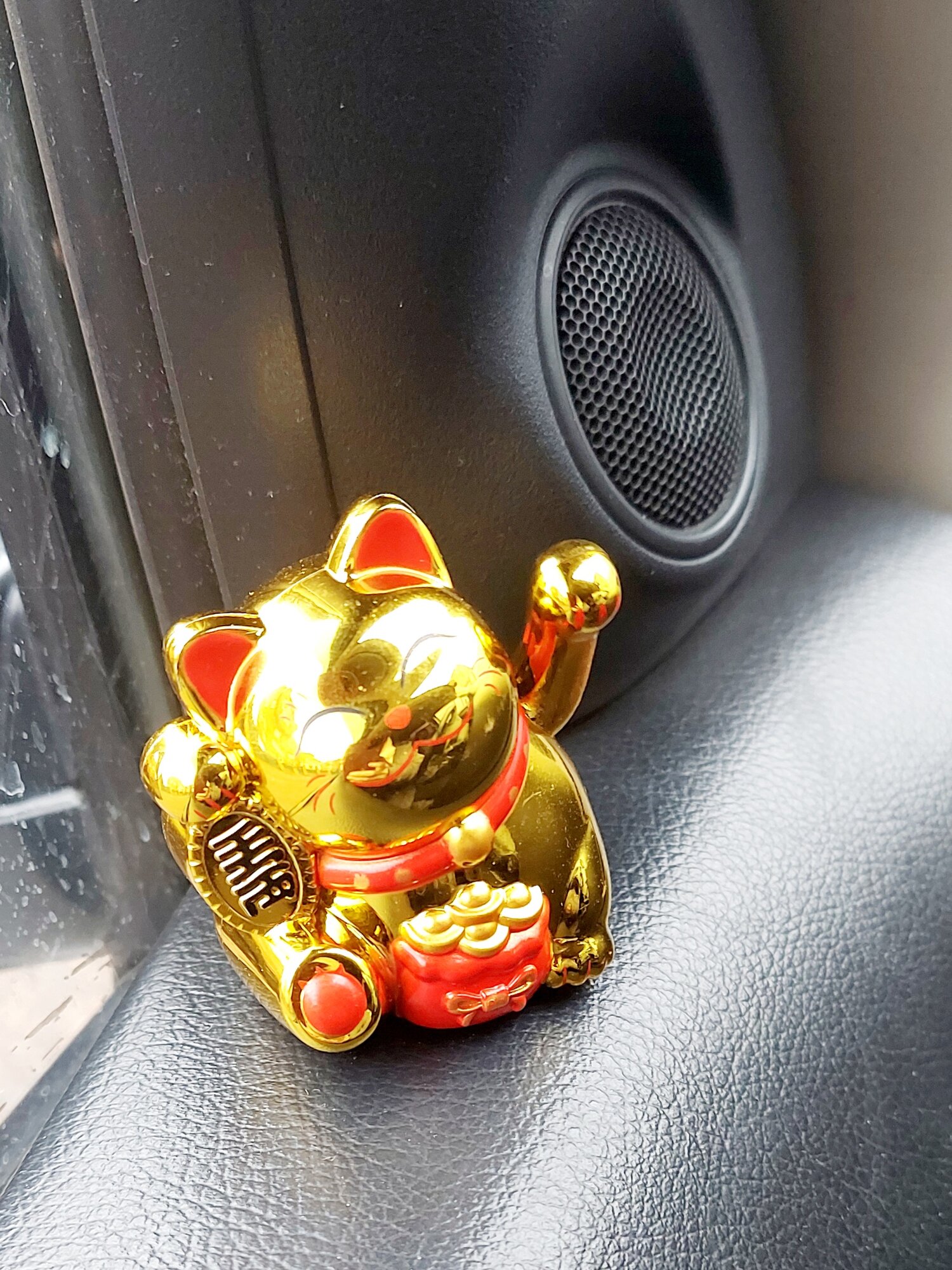 Денежный котик Манэки-Нэко машет лапкой в авто