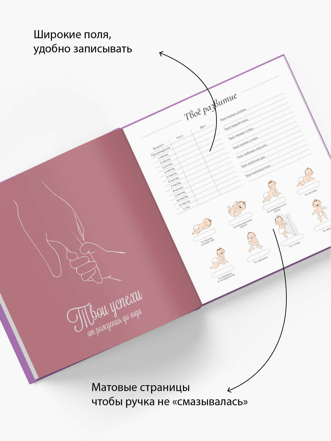 Фотоальбом детский от 0 до 7 лет/ Первый альбом малыша /фиолетовый , Coverlis интересное: