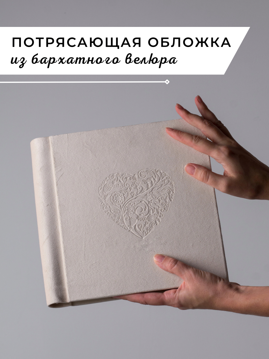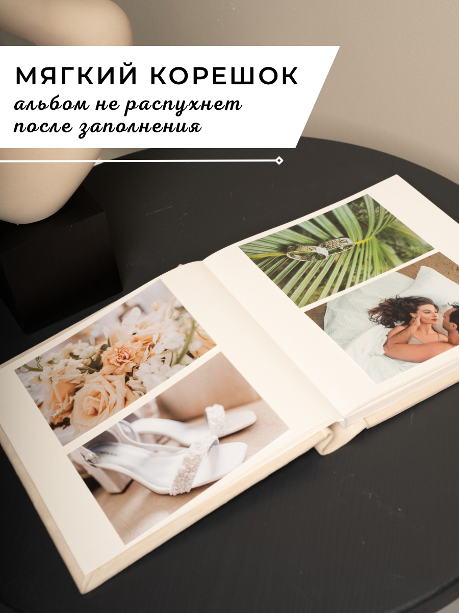Альбом для фото/ Семейный фотоальбом для разноформатных фотографий с чистыми листами/ домашний фотоальбом 24х24 см на 60 страниц, бежевый, Велюр интересное: