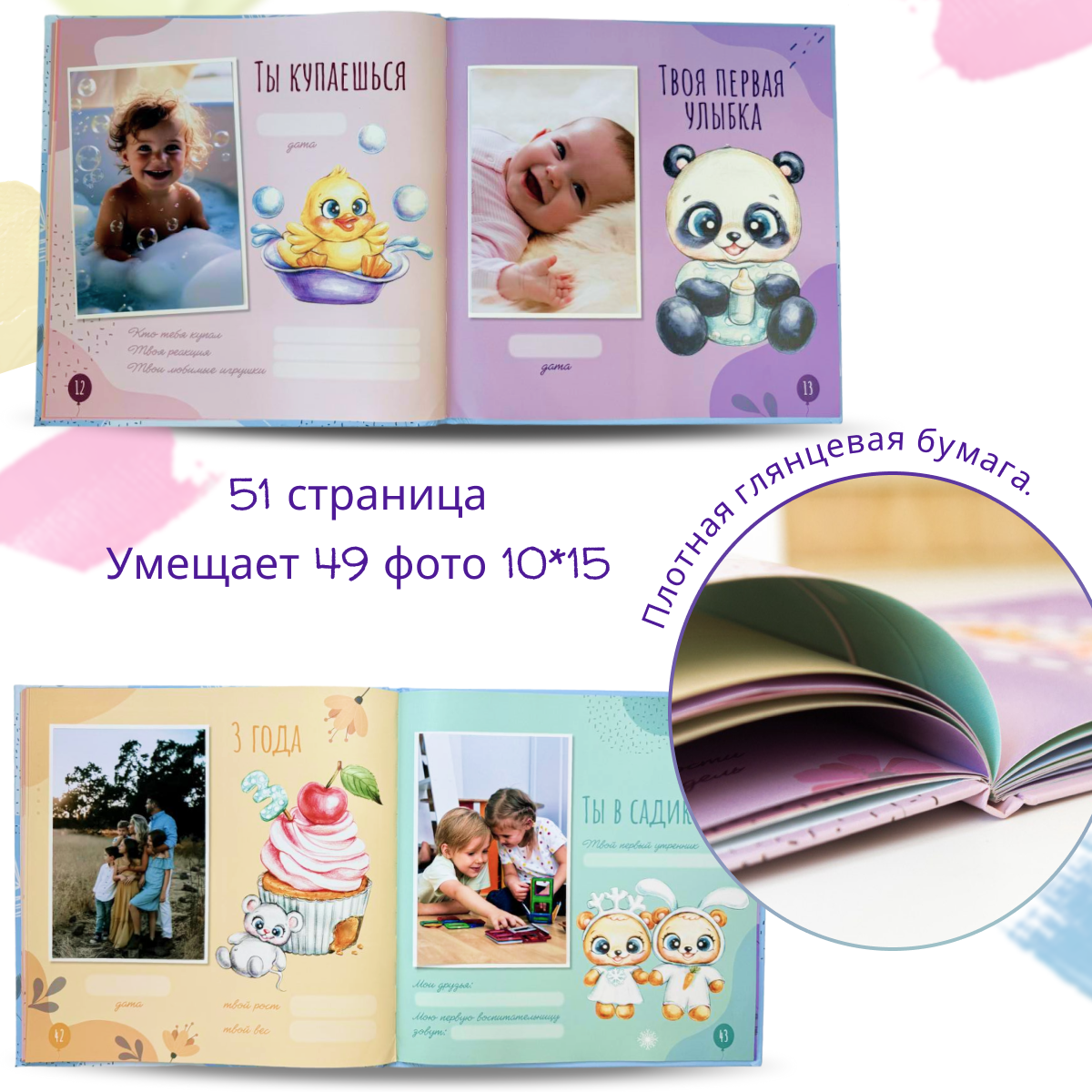 Первый альбом малыша от 0 до 7 лет / Альбом для новорожденного / альбом для фотографий детский/ фотоальбом / фотоальбом детский, семейный на подарок для девочки