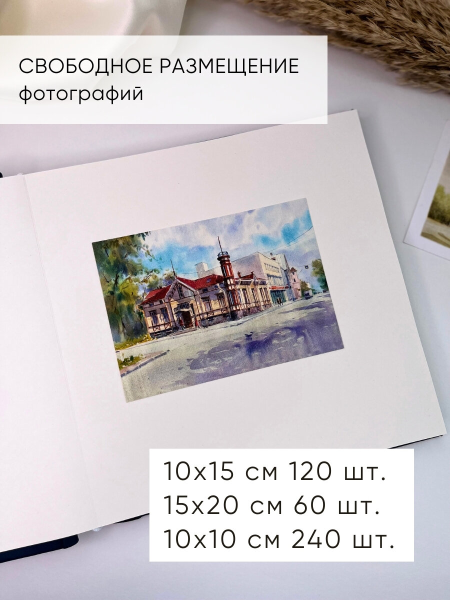Альбом для фото/ Семейный фотоальбом для разноформатных фотографий с чистыми листами/ домашний фотоальбом, синий, 60 страниц интересное: